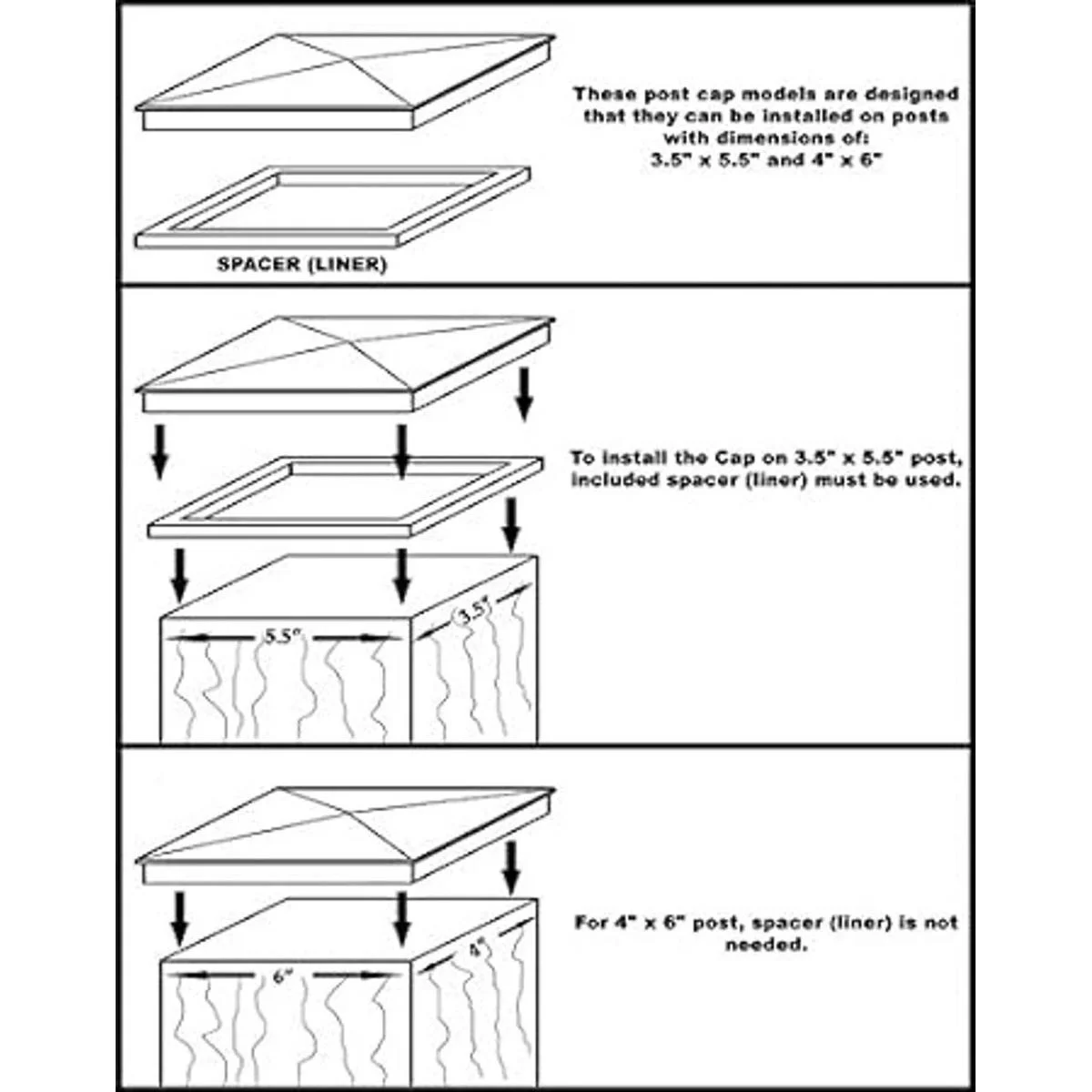Se adapta a más de postes nominales de 4 x 6 pulgadas con forro adaptador incluido o postes sin apretar de 4 x 6 pulgadas sin forro adaptador.