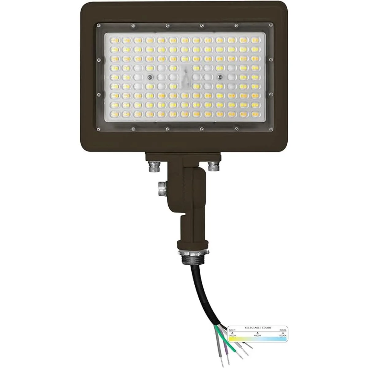 NUWATT Luz de inundación LED para exteriores de 90 W, luz de inundación LED impermeable con soporte de nudillos de 12 pulgada, 12600 lúmenes, luz de inundación LED seleccionable en color 3CCT para patio, jardín, garaje comercial, 100277 V, acabado bronce