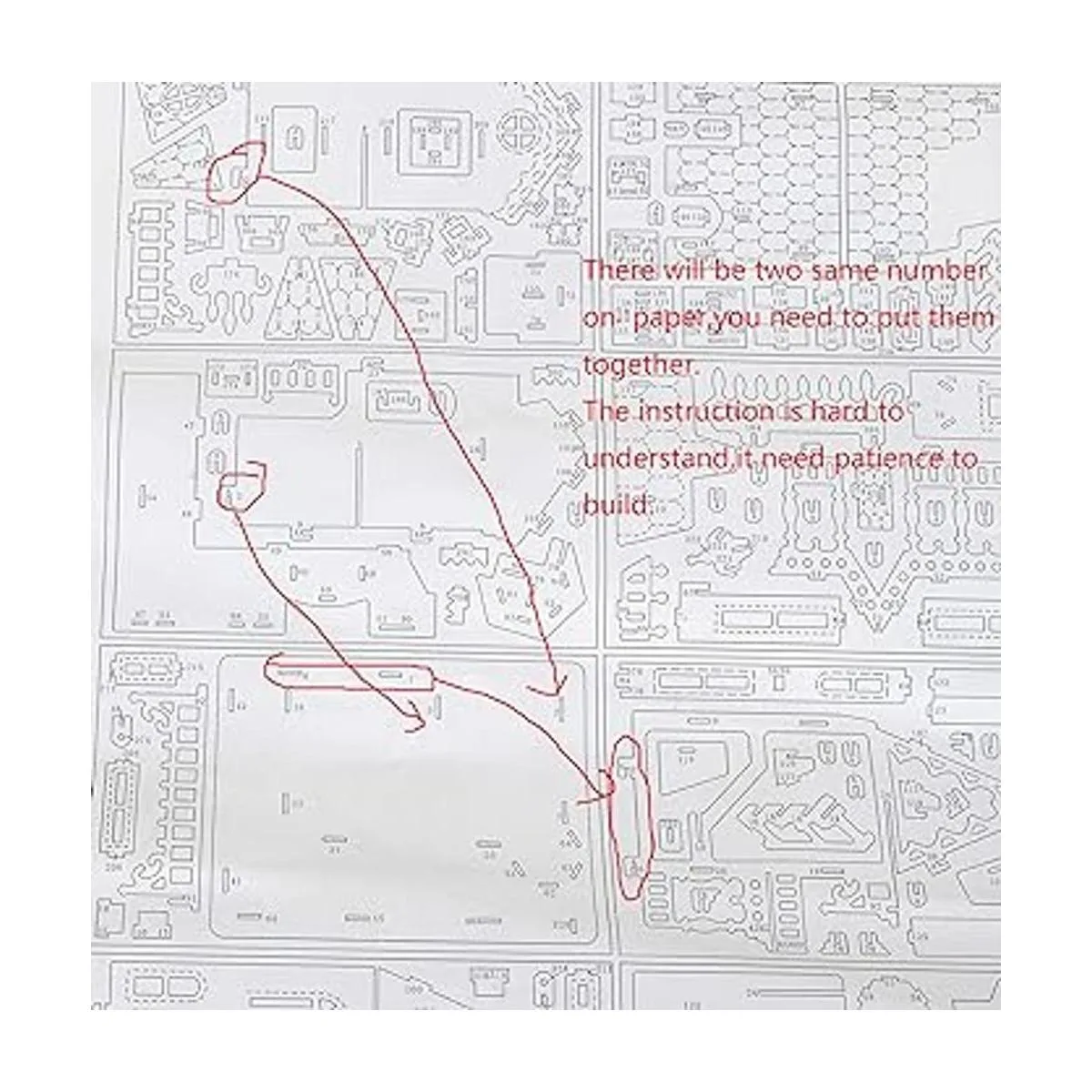 No hay instrucciones detalladas, puedes ver algunos videos de montaje en Youtube primero. Necesita 25 horas para construir. Si faltan algunas piezas de madera, podemos reembolsarte 2 a 5 ya que no podemos reenviar reemplazo.