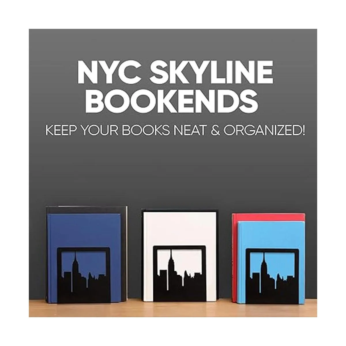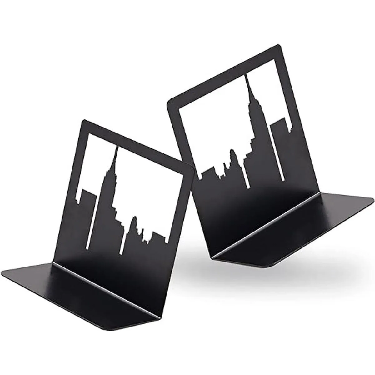 NYC Skyline Sujetalibros negros para libros pesados, extremos de libro de primera calidad para oficina, tapón de libro resistente, sujetalibros resistentes a la corrosión y duraderos, decorativos únicos para el hogar, 6.5 pulgadas de largo x 6 pulgadas de ancho, 1 par Geomod