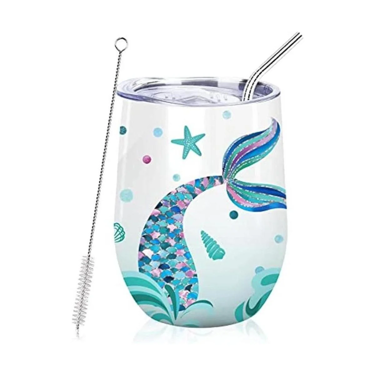 NymphFable 12oz sirena regalos para niñas vino vaso con paja y tapa acero inoxidable vino vidrio aislado doble pared