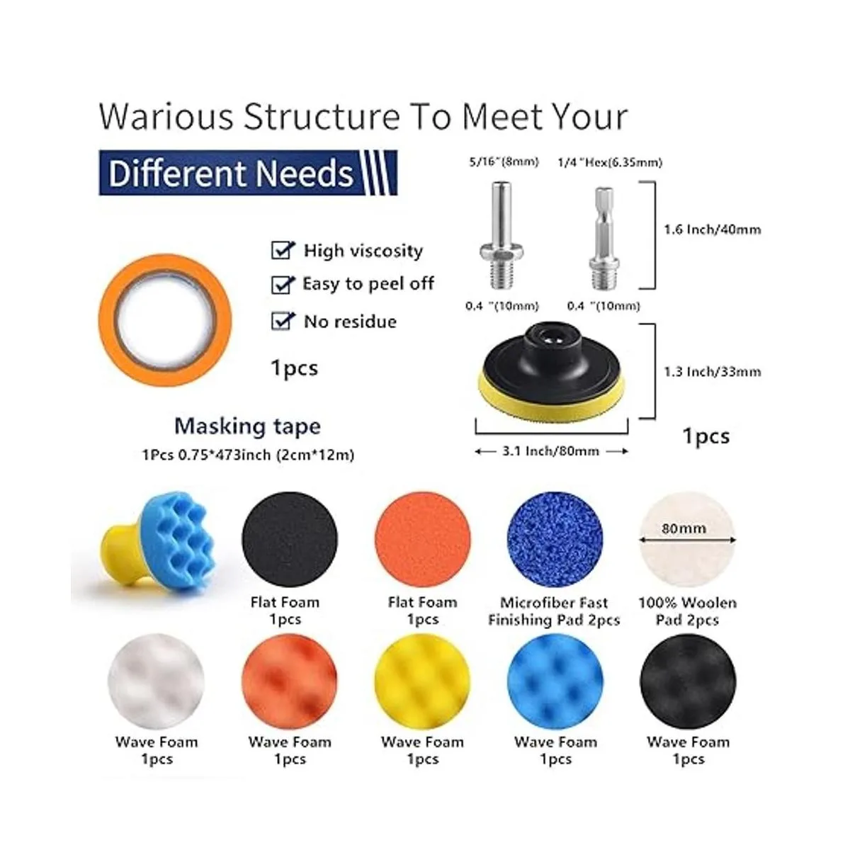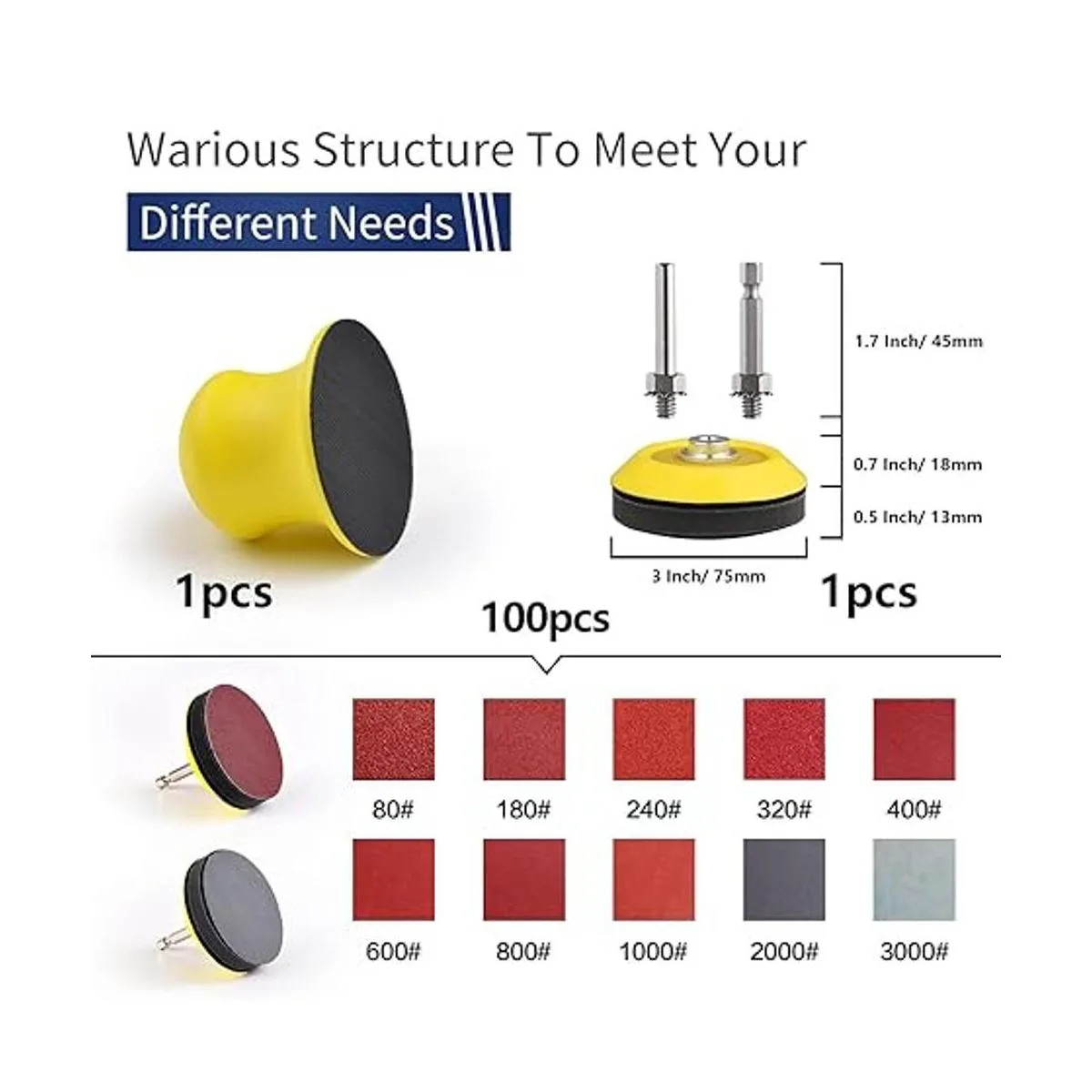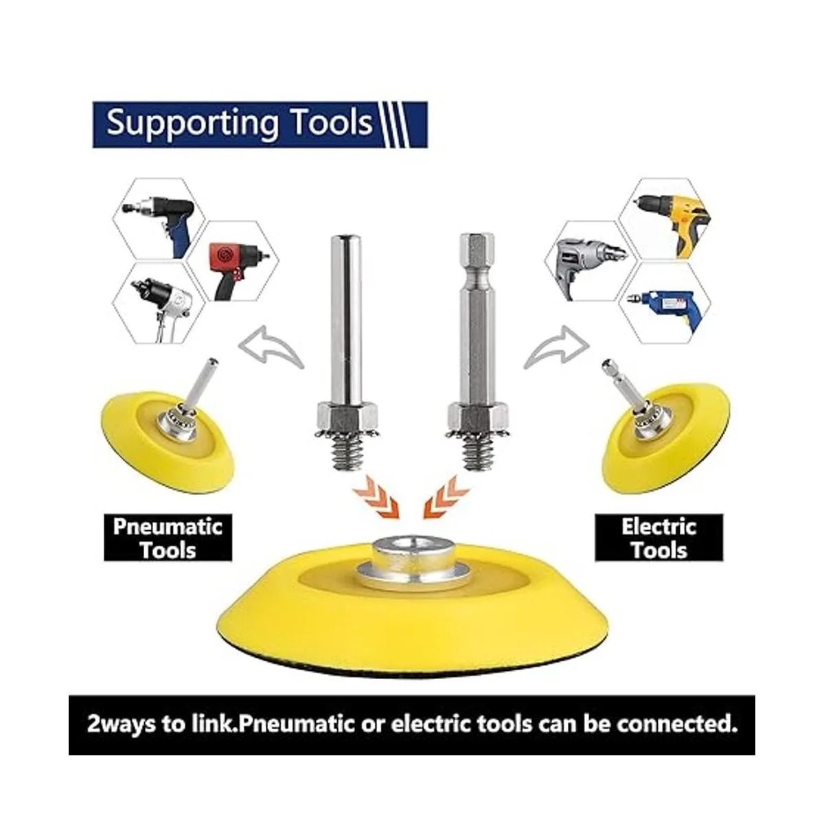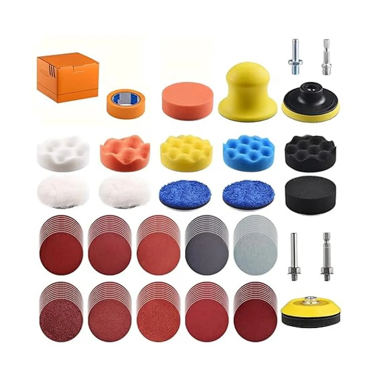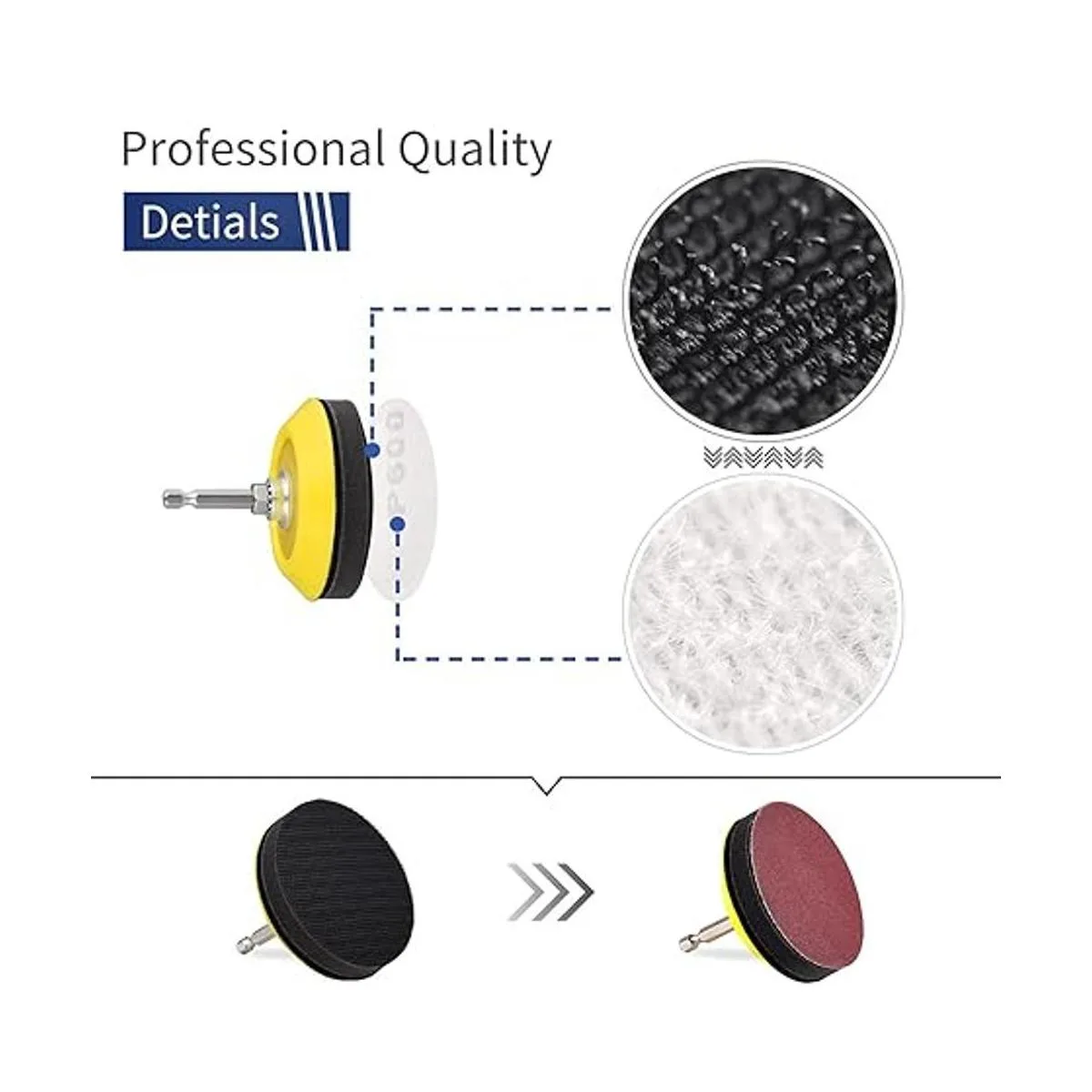 NYNM Paquete de 120 almohadillas de pulido de 3 pulgadas para taladro de lijado kit variado con vástagos de 516 pulgadas y 14 pulgadas para pulidor de automóvil, esmalte de sellado de encerado, almohadillas de lijado incluyen grano 803000