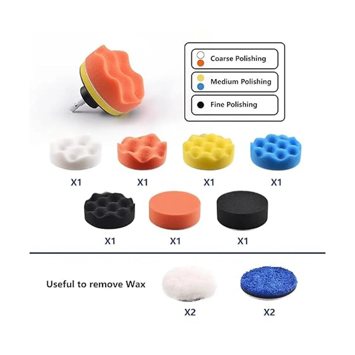 encerado: el disco de esponja ondulado puede cubrir la cera rápida y uniformemente sin dañar la superficie de la pintura del coche o las luces, de los cuales el mejor disco de lana australiana y el paño de fibra de alta tecnología pueden ayudar a limpiar el exceso de cera y luego pulirlo, haciendo que la superficie sea brillante como nueva. La almohadilla de microfibra puede ayudar a limpiar el exceso de cera y tener un resultado de pulido.