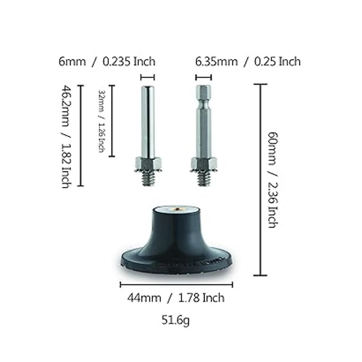 El paquete de discos de lijado tiene un total de 3 piezas, 1 almohadilla de disco de cambio rápido y 2 vástagos de 1/4.