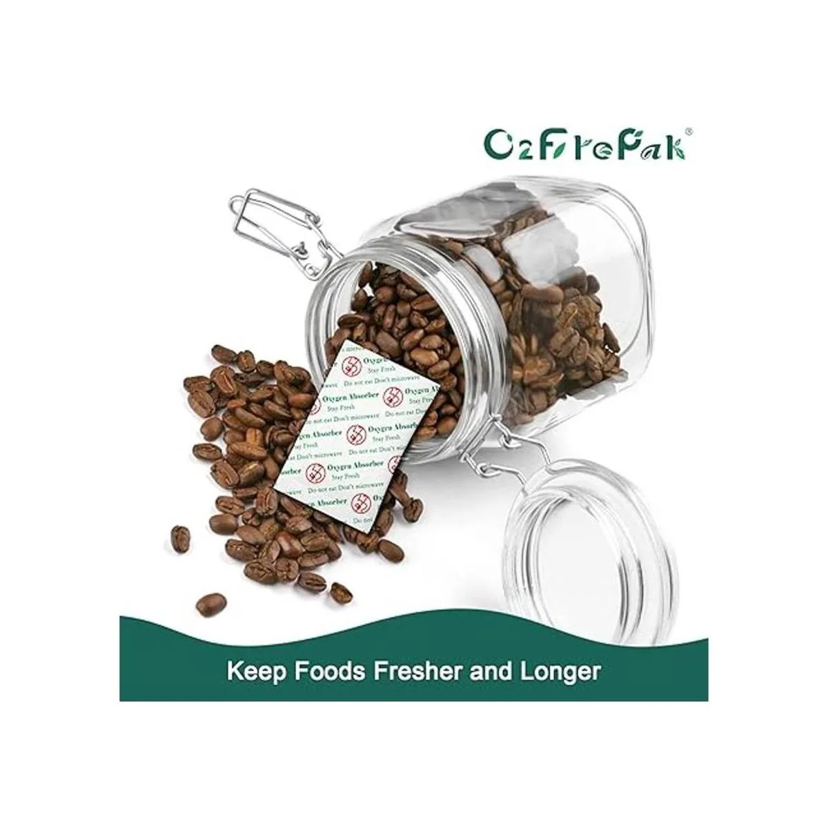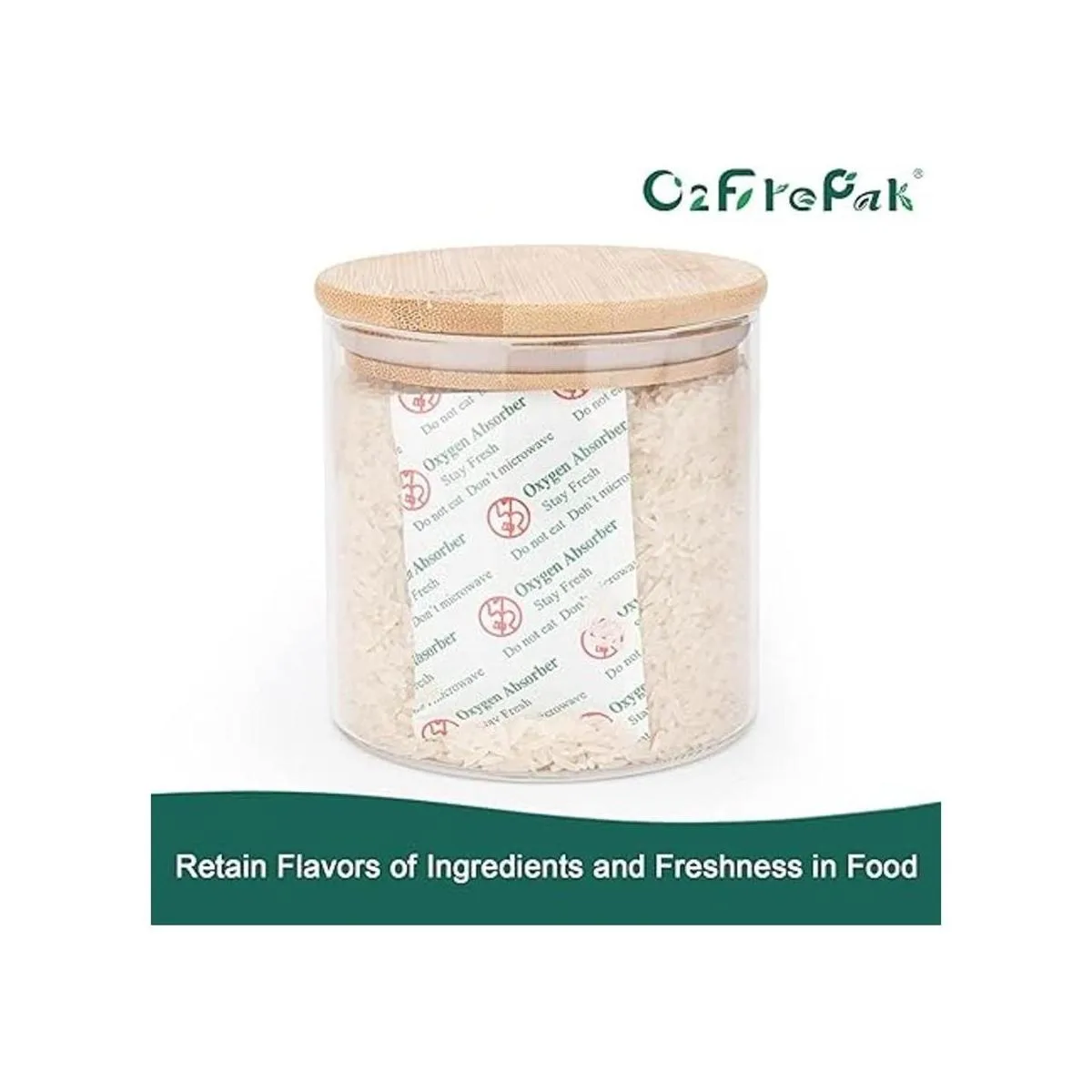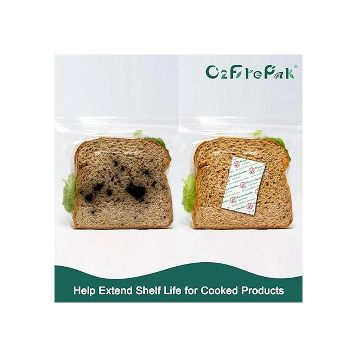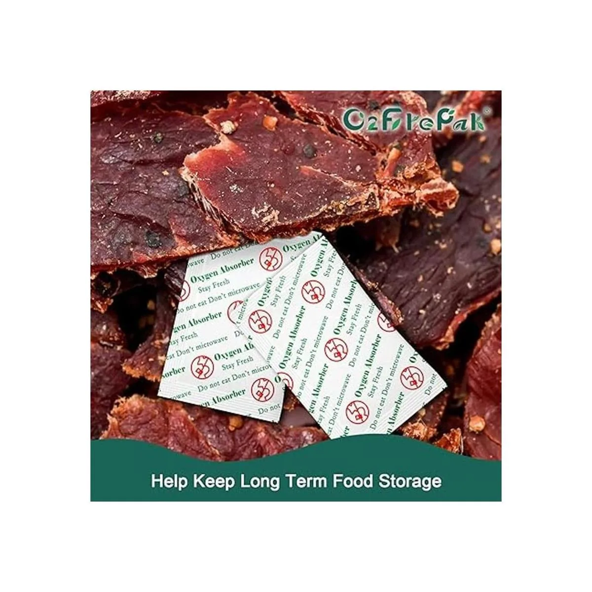O2frepak Paquete de 100 absorbentes de oxígeno de grado alimenticio para almacenamiento de alimentos, paquetes de almacenamiento de absorbentes de oxígeno con indicador de oxígeno en bolsa de vacío y capacidad de absorción de oxígeno de 3 veces