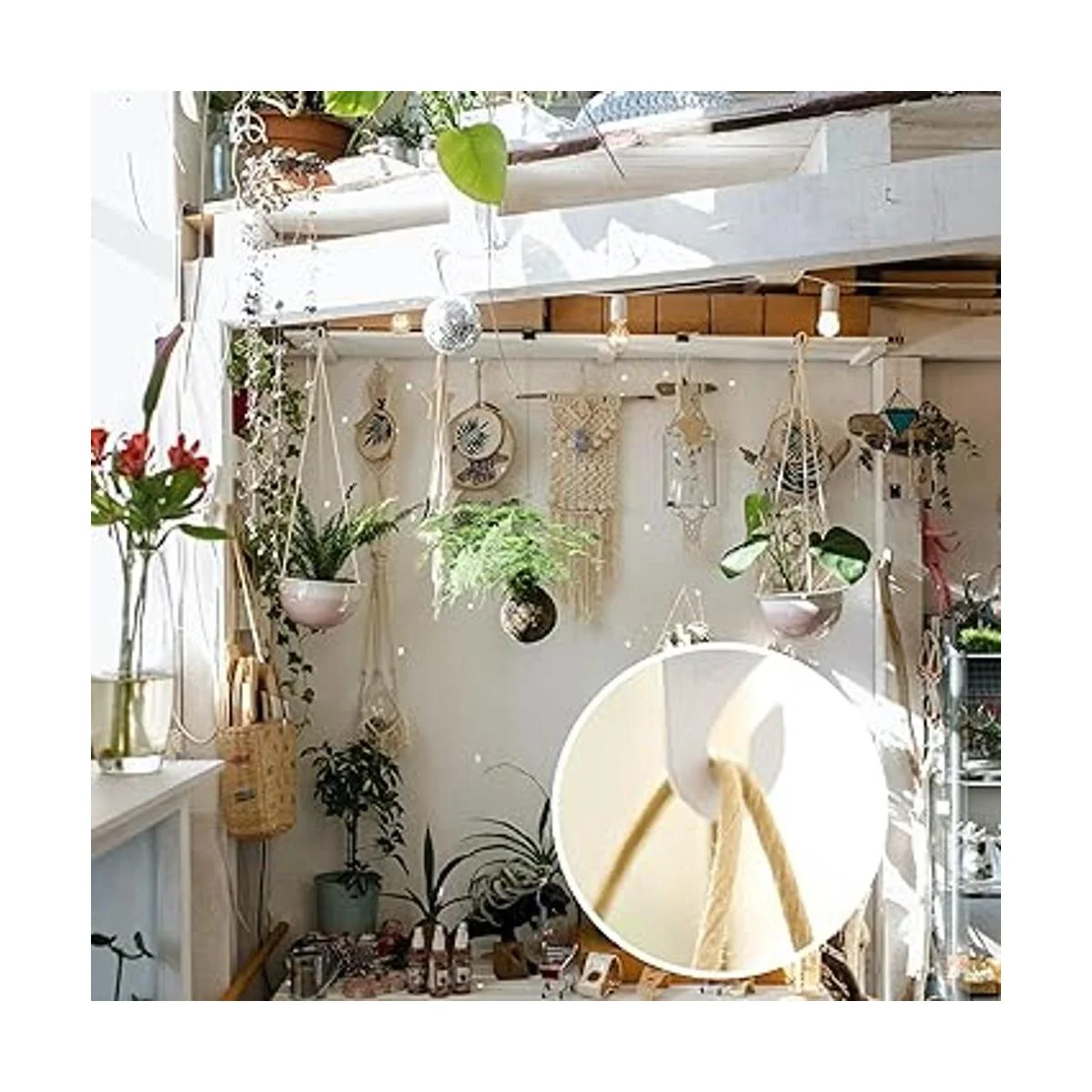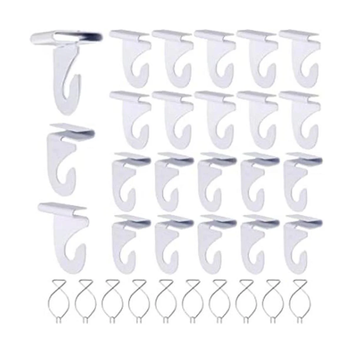Material del producto: nuestros ganchos están hechos de aluminio resistente y recubiertos con esmalte blanco para proporcionar una larga durabilidad. Colgar hasta 15 libras. Los clips de gancho de techo están hechos de acero, perfectos para colgar plantas, luces de Navidad y otras decoraciones en los techos.