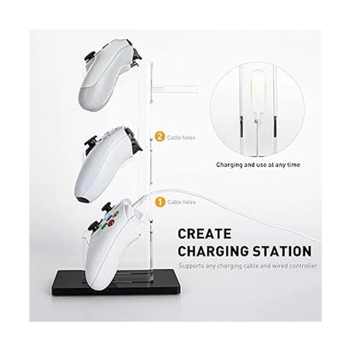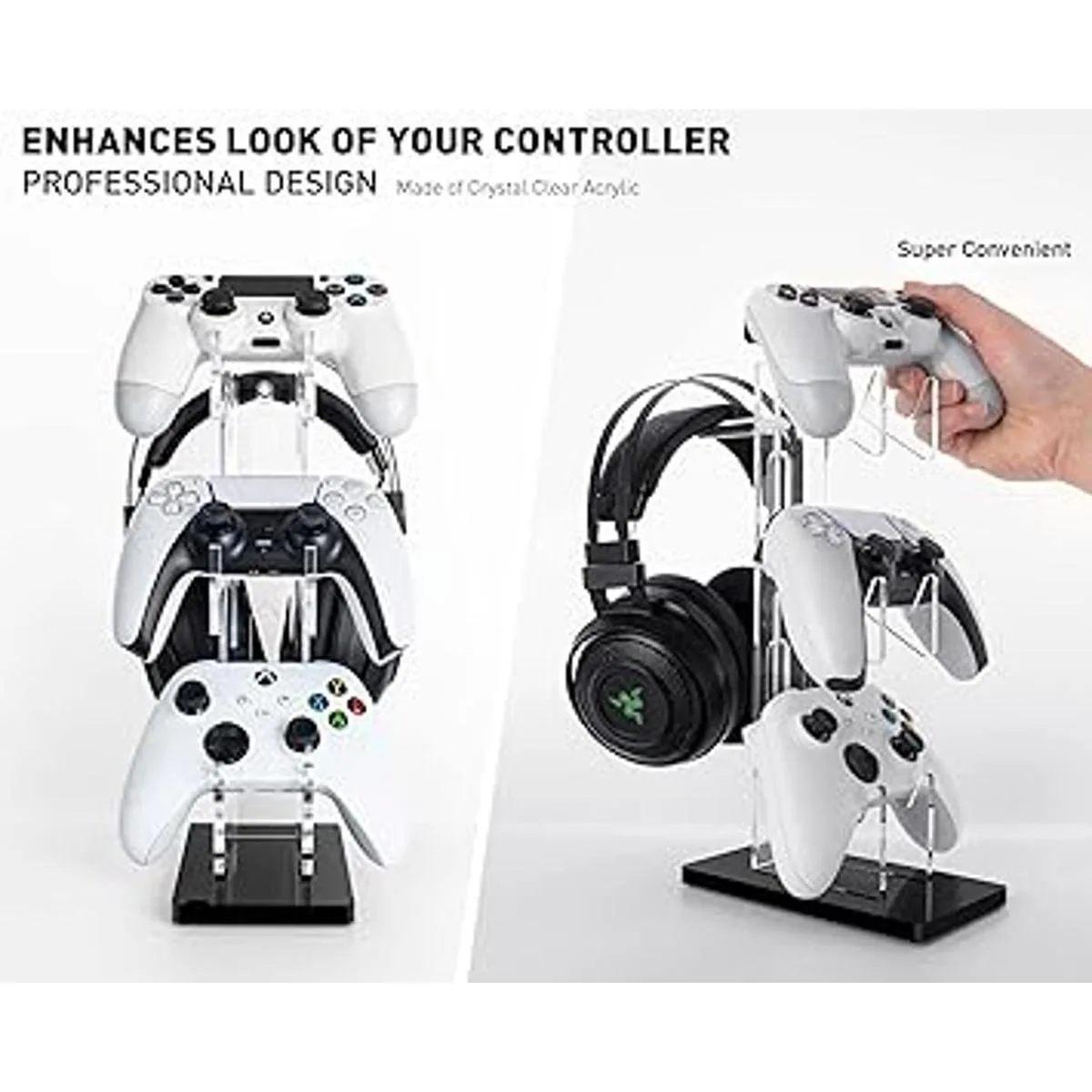 Diseño profesional: el soporte para controlador OAPRIRE está hecho de acrílico de alta calidad, transparente, resistente y fresco, mejora el aspecto del controlador, también una excelente manera de mostrar todos tus controladores y auriculares.