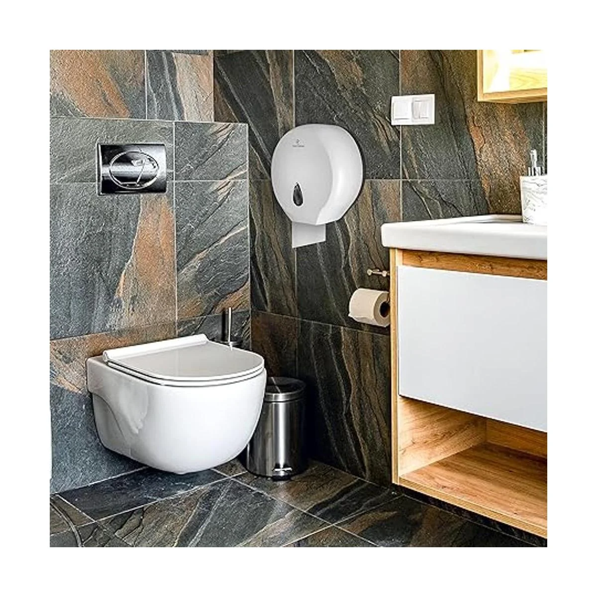 Diseño compacto y ahorra espacio: este dispensador de papel higiénico está diseñado para ser montado en la pared para un fácil ahorro de espacio y dispensación económica de papel higiénico, incluso en instalaciones con el espacio más restringido disponible.