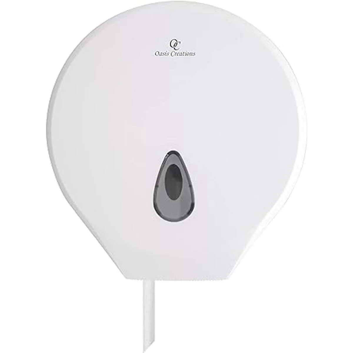 Oasis Creations Dispensador de papel higiénico de un solo rollo Blanco Dispensador de pañuelos de baño de 9 pulgadas