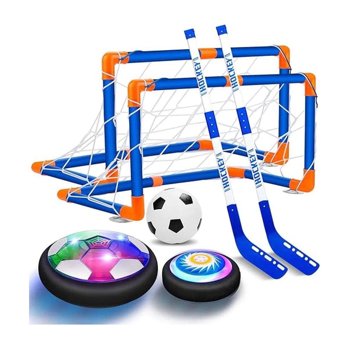 OASO Juguetes para niños Hover Hockey Juego de pelota de fútbol con 3 porterías, pelota de fútbol flotante recargable con luz LED y parachoques de espuma, juegos deportivos para interiores y exteriores, juguetes para niños y niñas de 3, 4, 5, 6, 7, 812 años