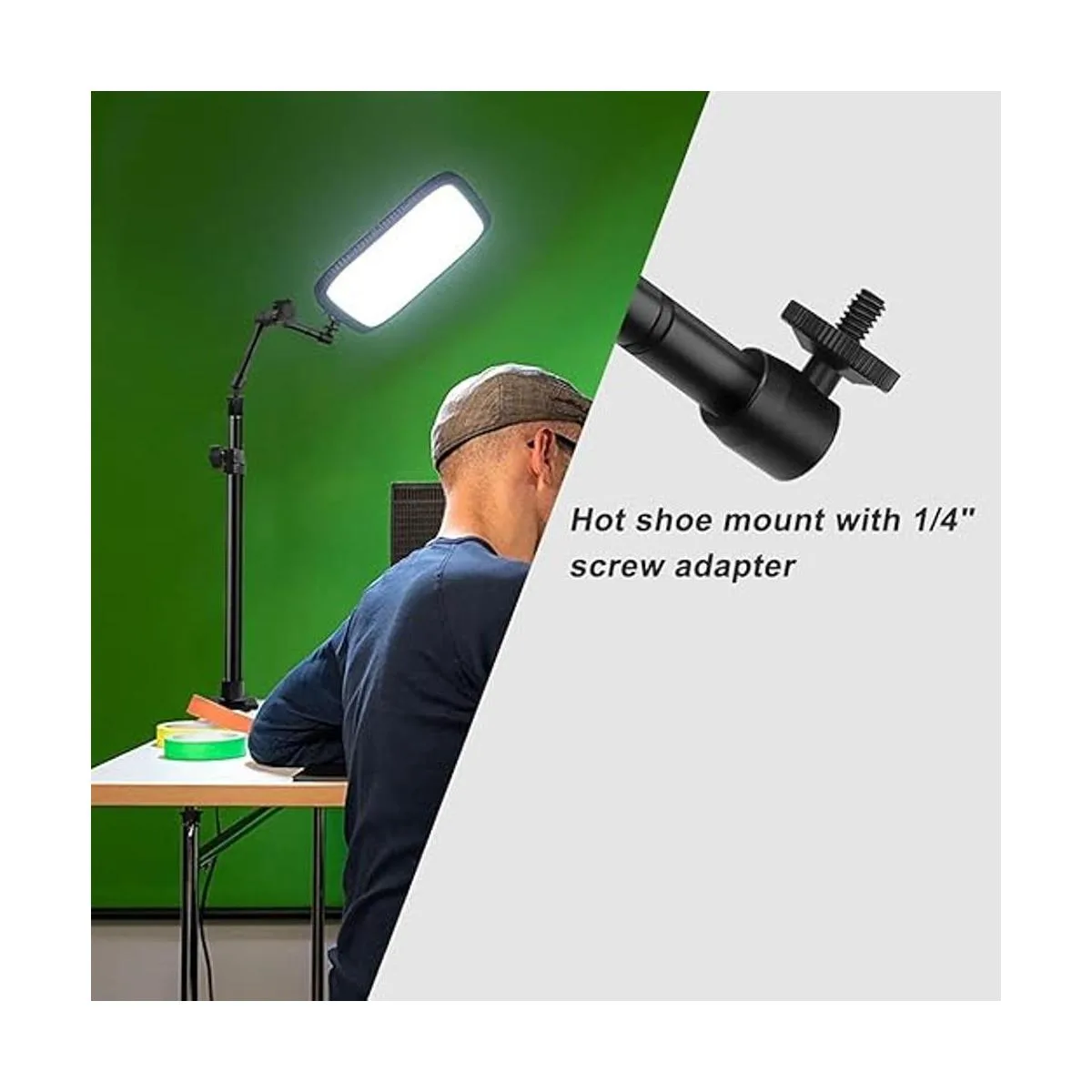Soporte de abrazadera en C de escritorio con rosca de 1/4 pulgadas, viene con cabeza de bola y un adaptador de interfaz de zapata caliente de 1/4 extraíble. Y fácil de instalar micrófono, luz de video LED, monitor a DSLR, videocámara o cámara digital, disparador remoto flash o adaptar cualquier cosa a través del tornillo de 1/4 pulgadas en la parte superior del soporte. El brazo mágico mejor carga 3.3 lbs.