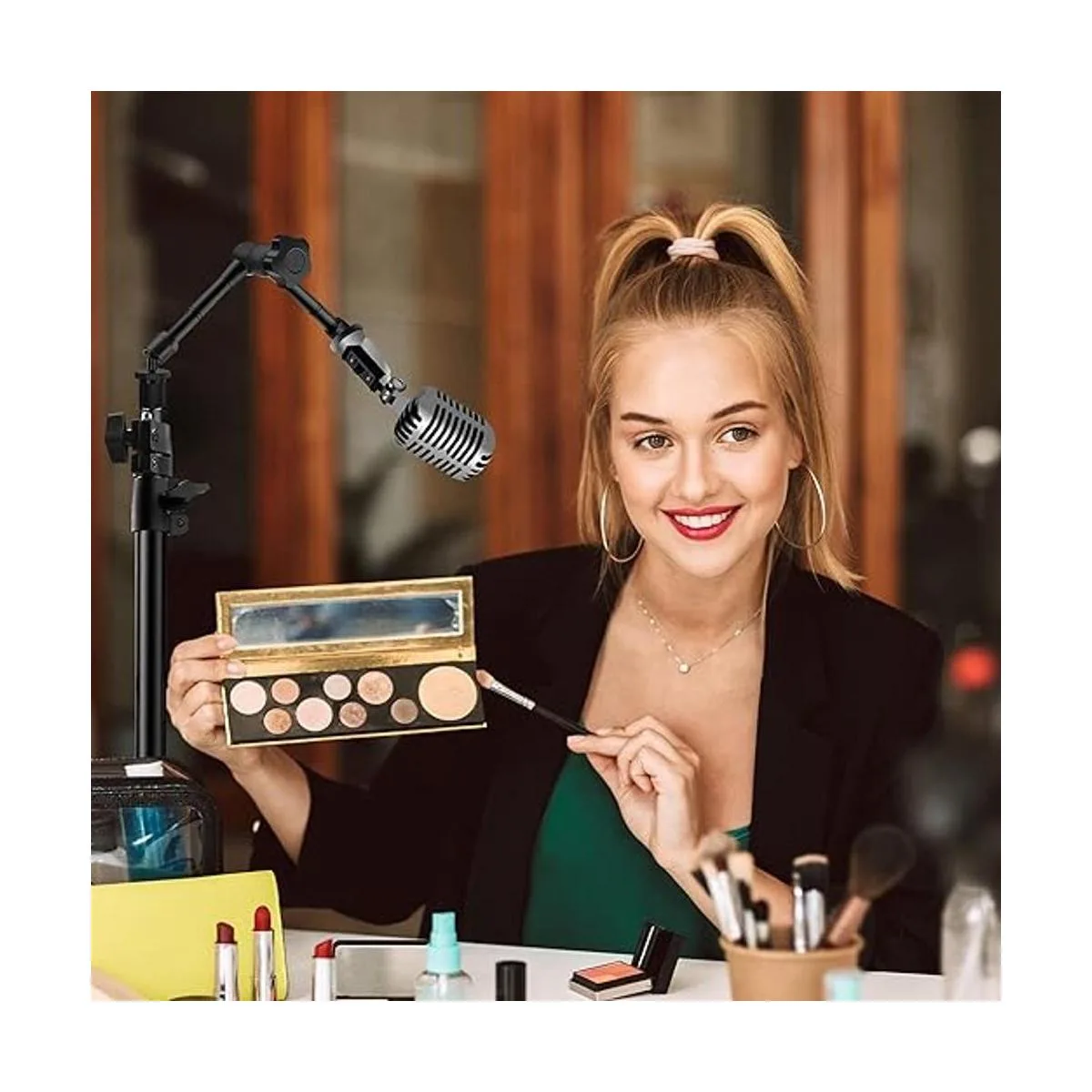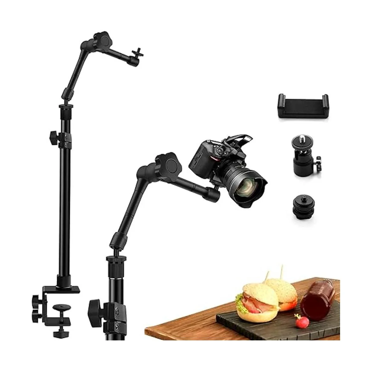 Obeamiu Soporte de escritorio para cámara, brazo mágico de 11 pulgadas con rosca de tornillo de 14 pulgadas, soporte de abrazadera de mesa de 15.5 a 25.5 pulgadas para cámara DSLR, luz de anillo, transmisión automática, transmisión en vivo, trabajo en línea