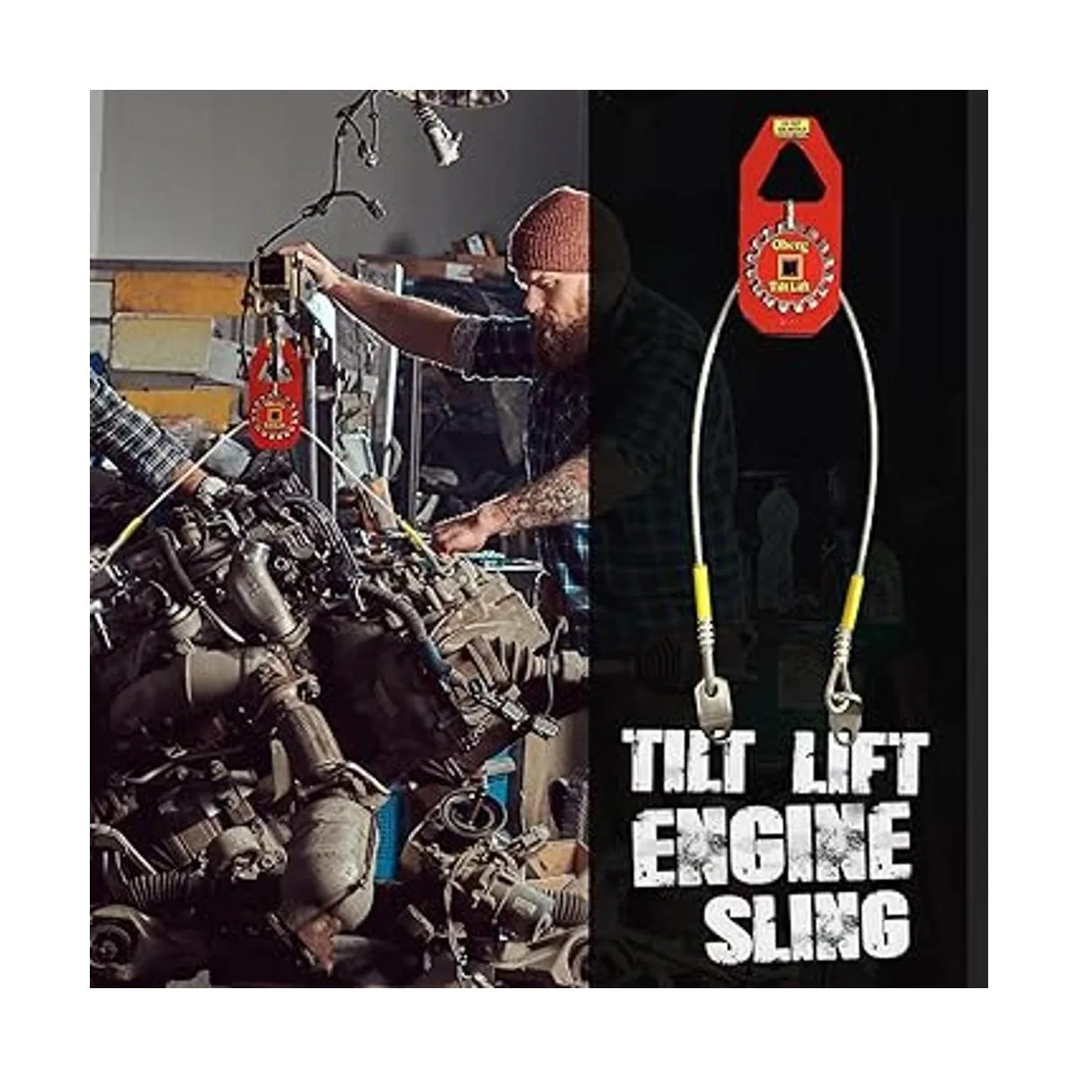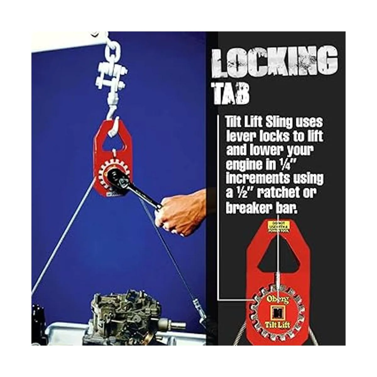 Oberg Tilt Lift Eslinga de elevación del motor, sin complicaciones de elevación de cadena, capacidad de 1 tonelada, inclinación de 45 grados, operación con una sola mano, fácil intercambio del motor, tacos de montaje que se sujetan a cualquier motor, factor de seguridad 3 a 1