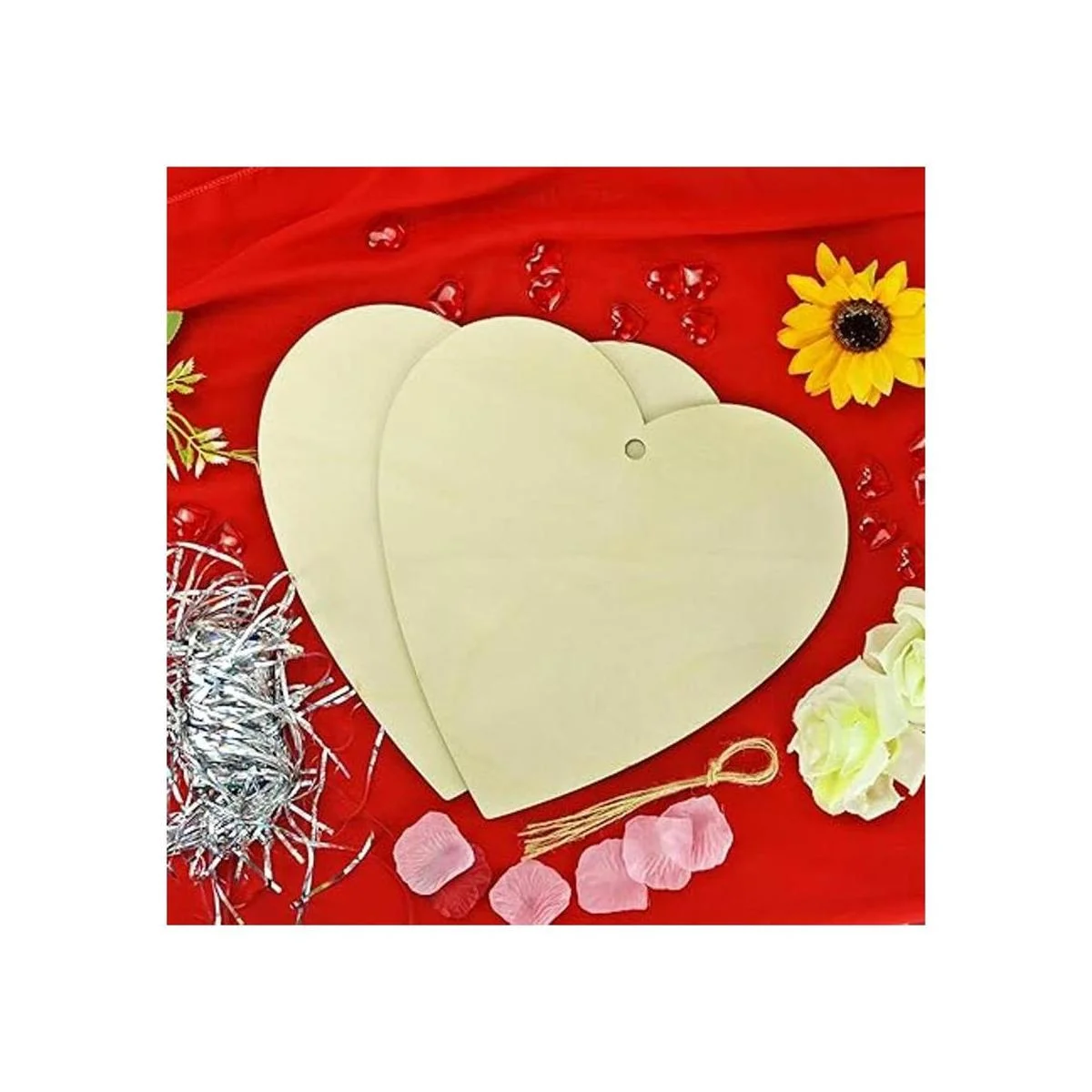El paquete incluye: recibirás 4 recortes grandes de corazón de madera y 4 cordel de yute natural para atar para colgar