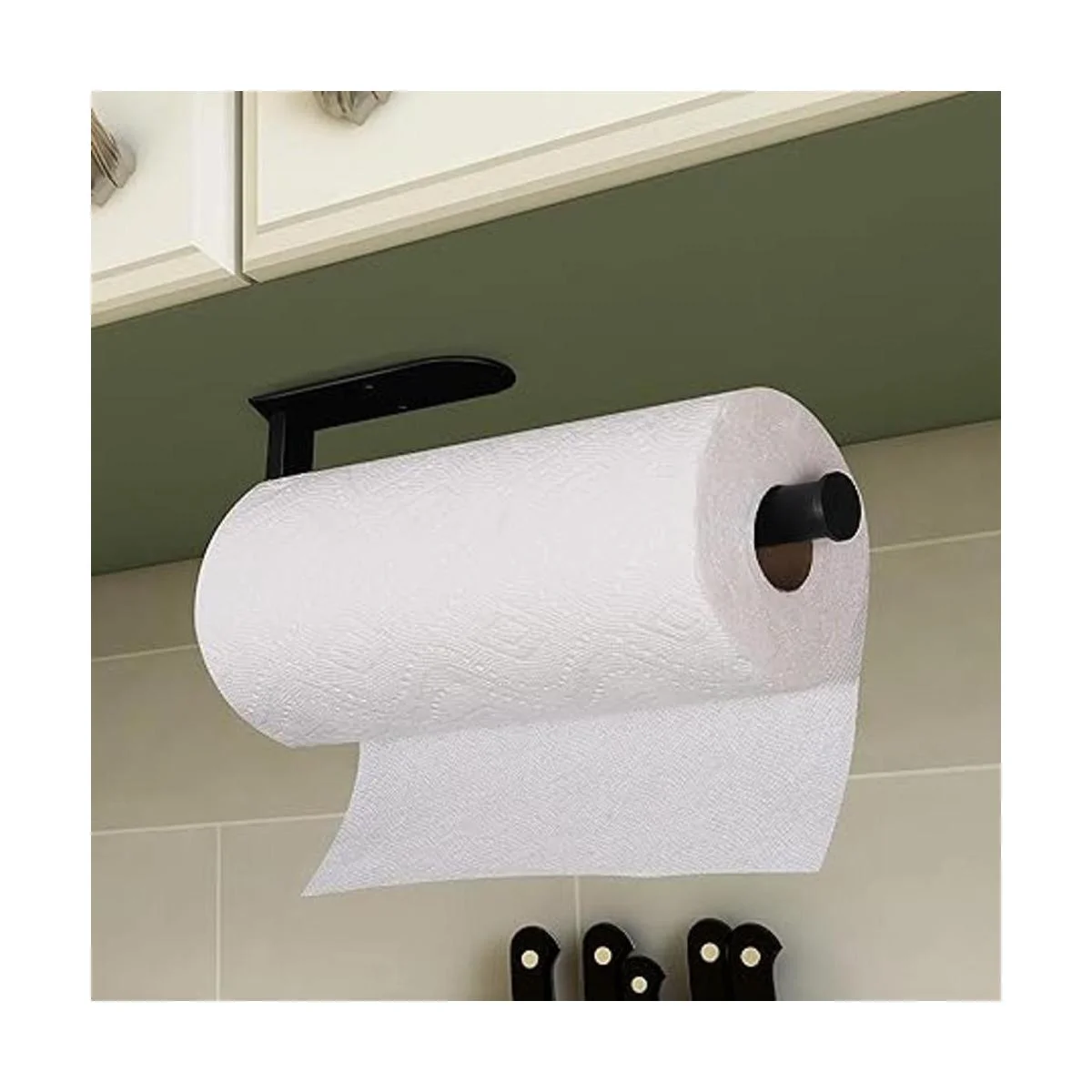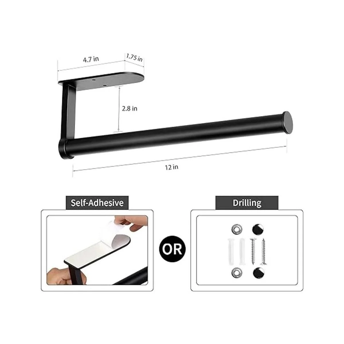 OBODING Soporte para toallas de papel para debajo del gabinete, soporte para toallas de papel negro, soporte de toalla de papel autoadhesivo, soporte para toallas de cocina para organización y almacenamiento 12 pulgadas, 1 unidad