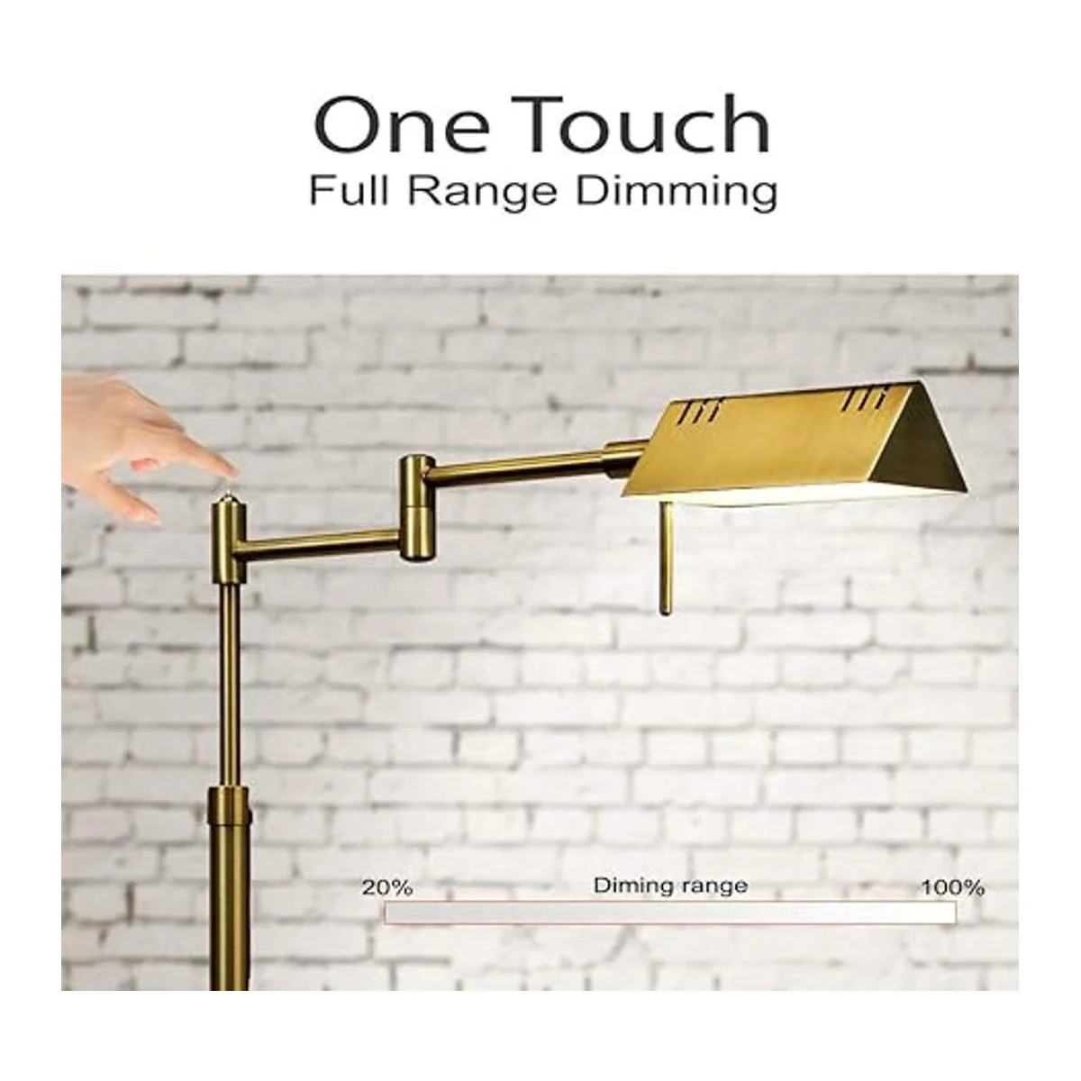 OBright Lámpara de pie LED regulable para farmacia, 12 W, atenuación de rango completo, brazos oscilantes de 360 grados, alturas ajustables, lámpara de pie para leer, coser y manualidades, listado ETL, latón antiguo dorado