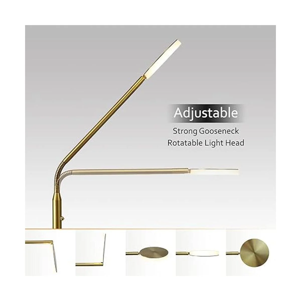 OBright Moon Lámpara de pie LED regulable, temperatura de color ajustable para lectura de noche, luz de trabajo, luz de artemanualidades, costura, cuello de cisne ultra flexible, iluminación giratoria, latón antiguo dorado