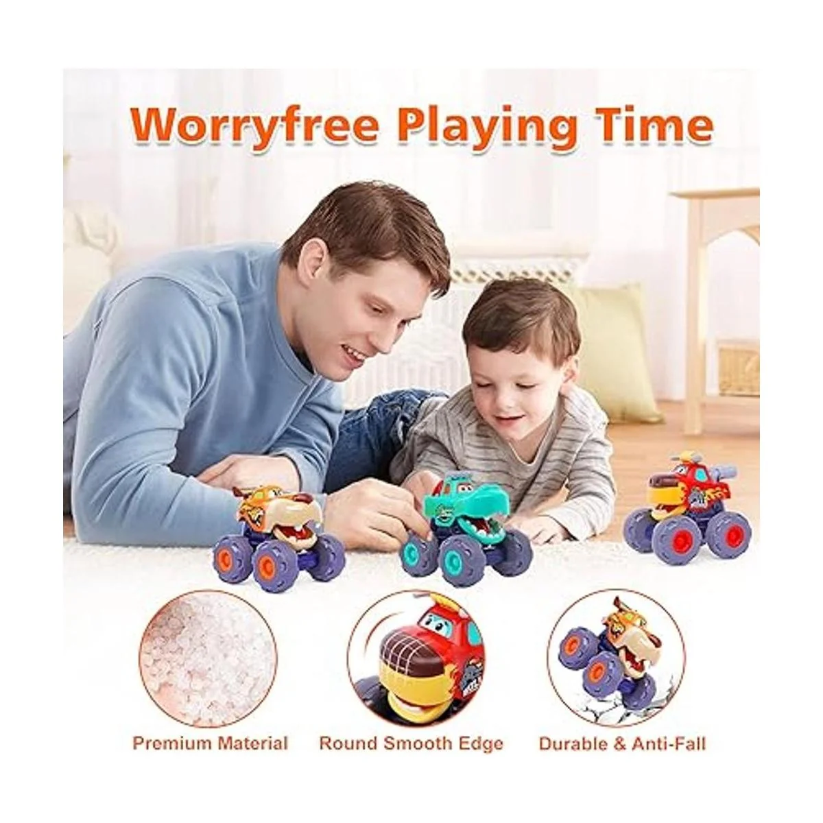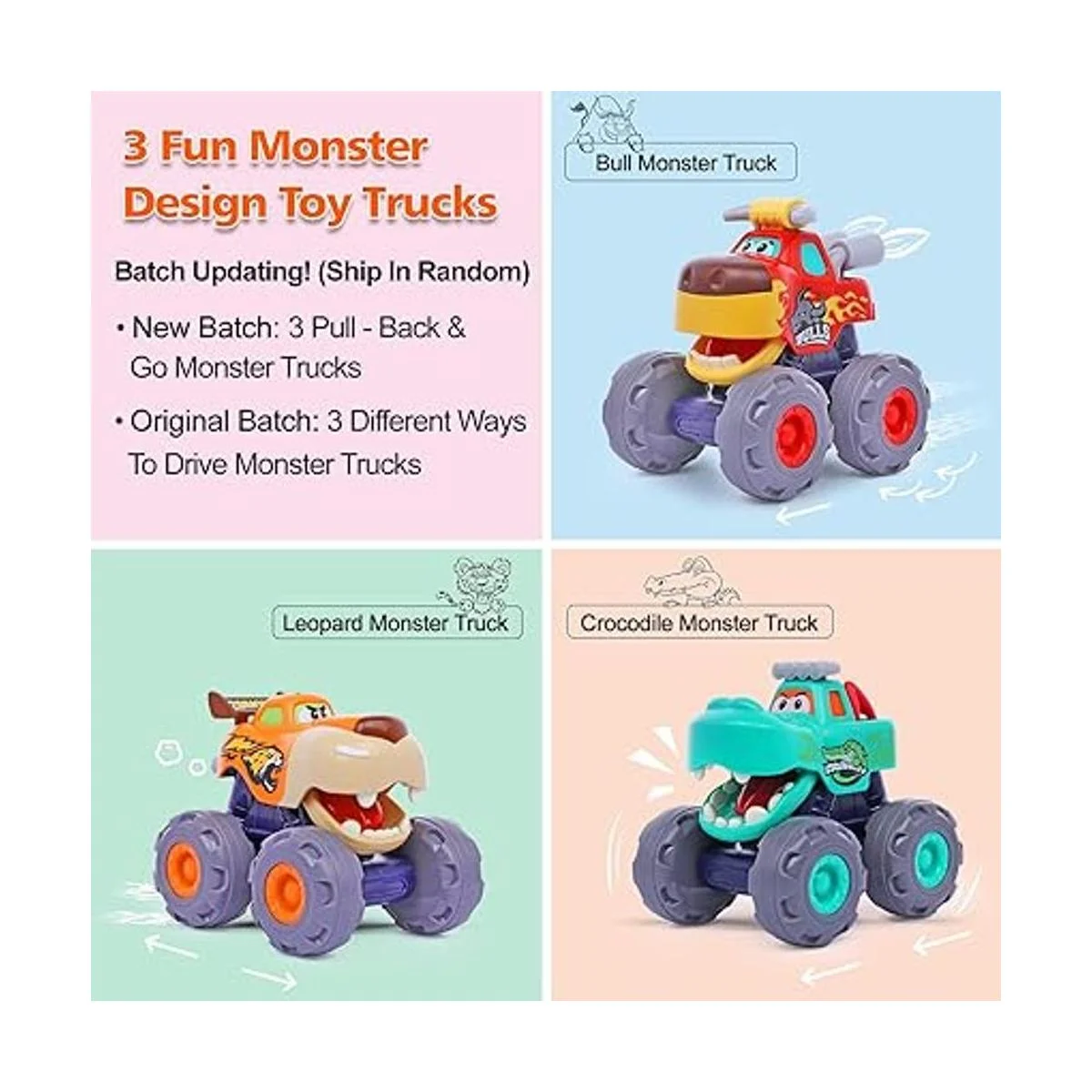 3 divertidos juguetes de camión monstruo: juguetes novedosos para niños de 1 año, actualización de lote de sugerencia de algunos padres envío al azar. 3 poderes para dejar ir a los coches, o 3 coches de tracción hacia atrás y hacia atrás nuevo lote en 3 bonitos camiones monstruos realistas, leopardo, toro y cocodrilo. 100 lindo y atrae bien a tu bebé, juego de coches de juguete único, divertido y útil, los mejores juguetes de un año