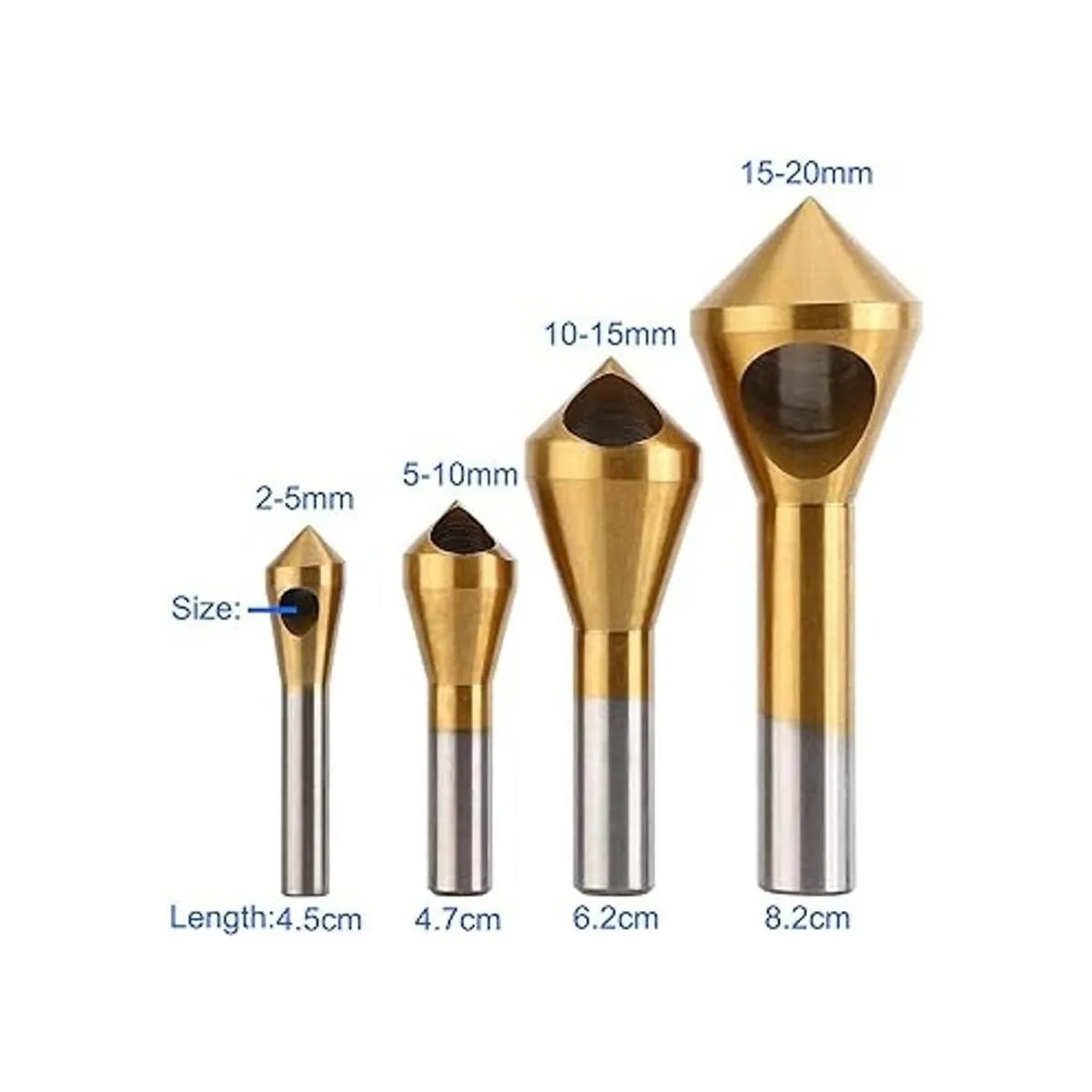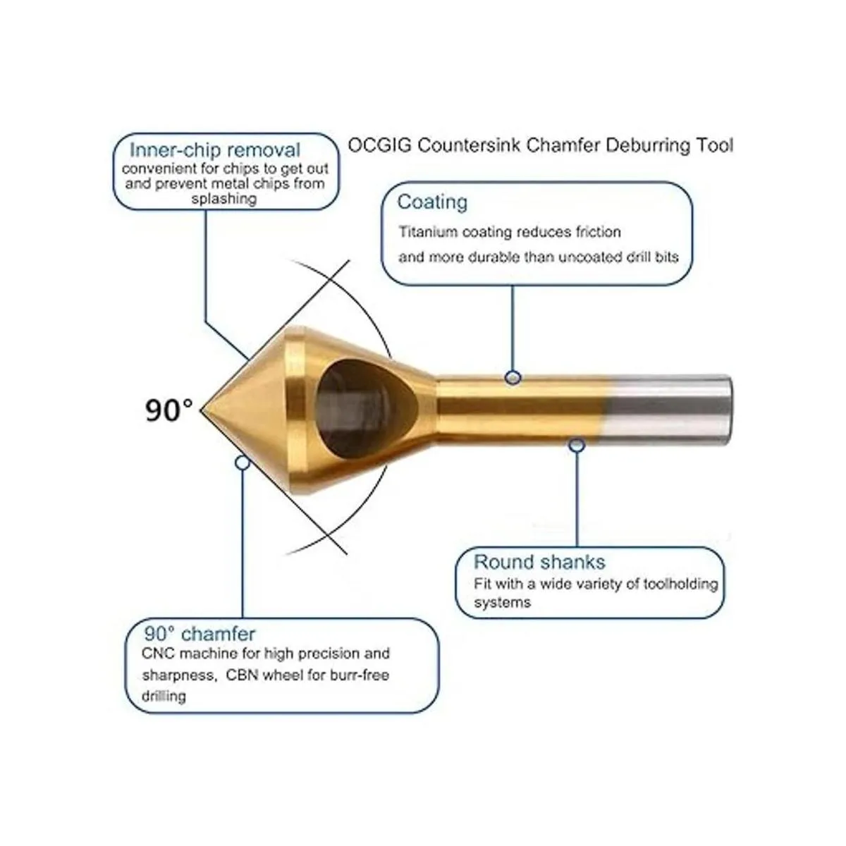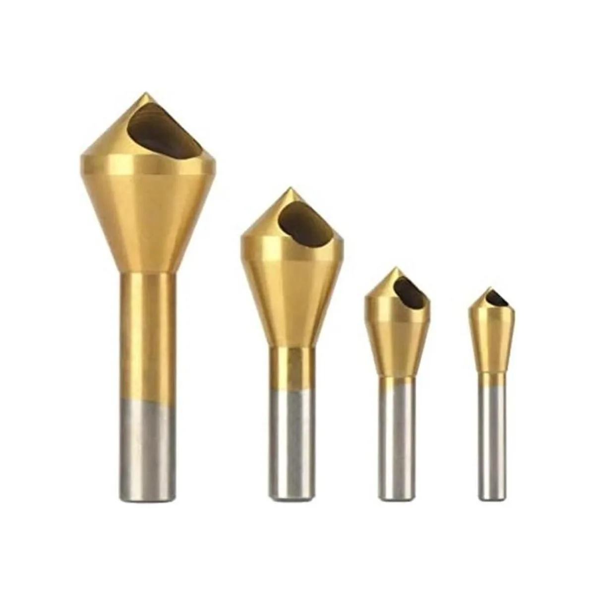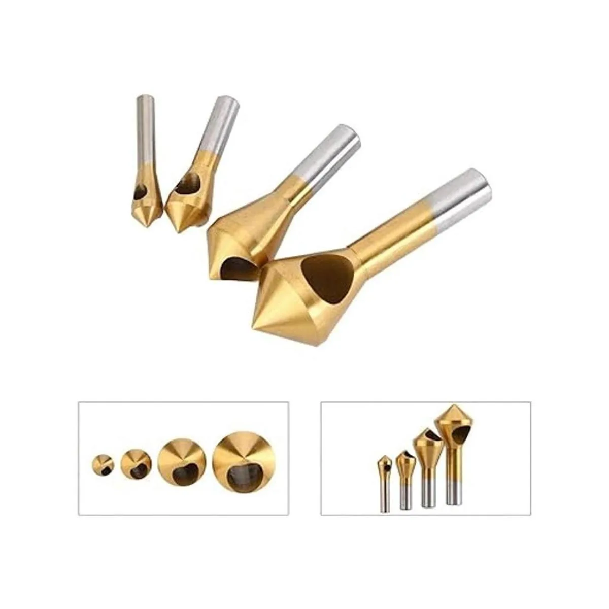 OCGIG Juego de 4 herramientas de bisel avellanado con revestimiento de titanio, herramientas de desbarbado de madera de metal, brocas Zhongbo Business