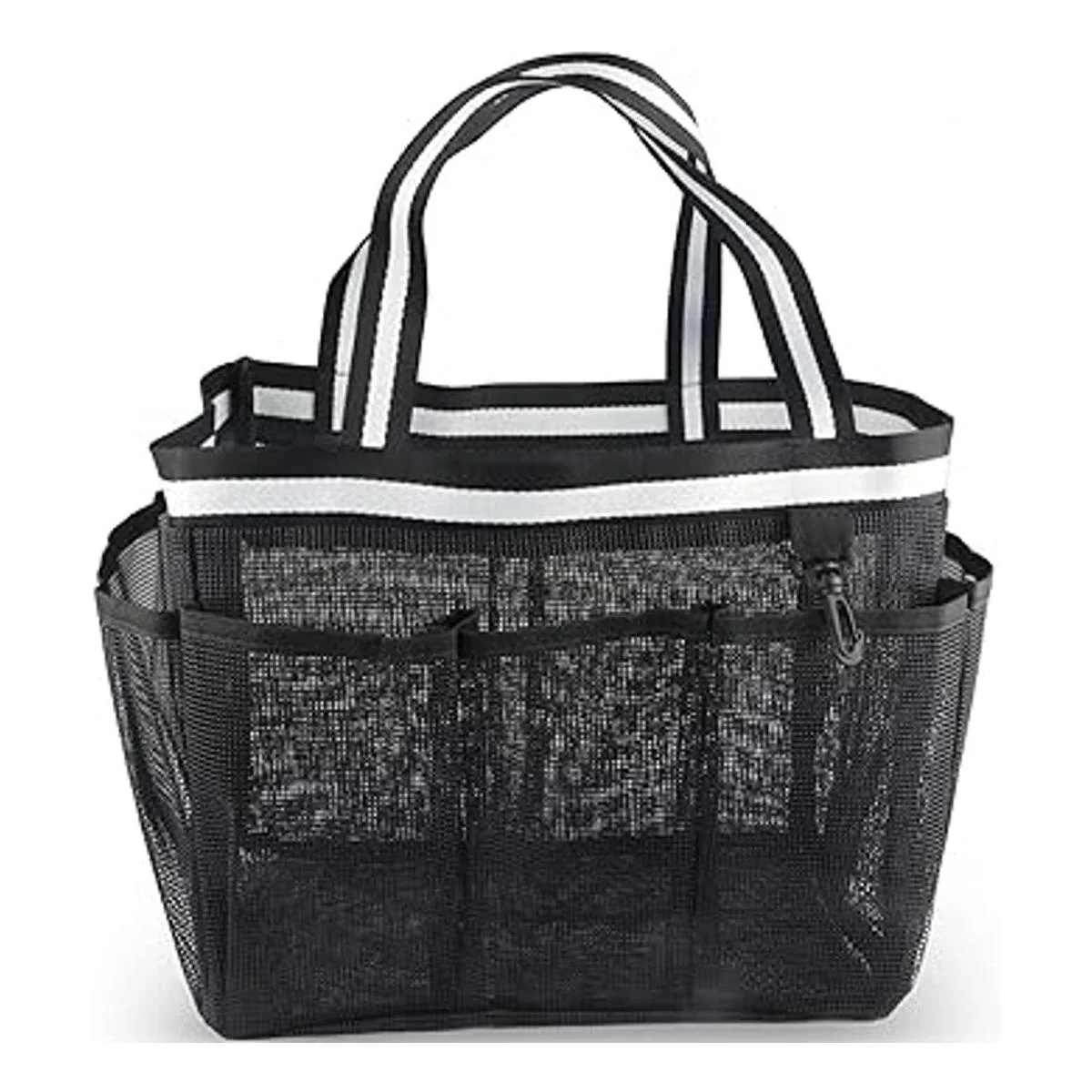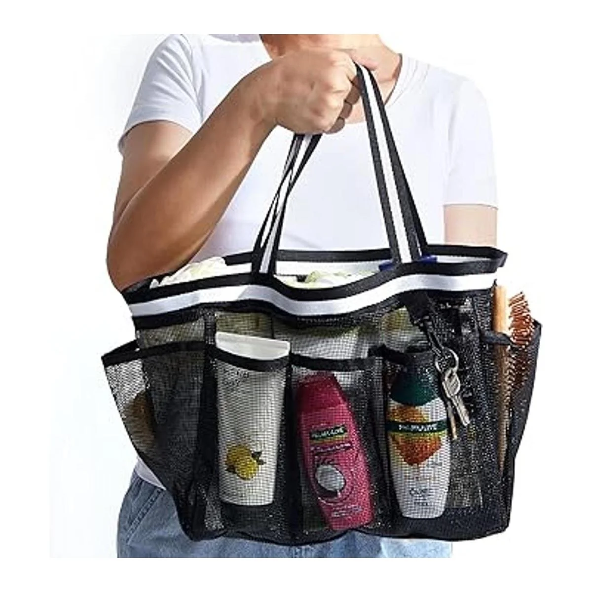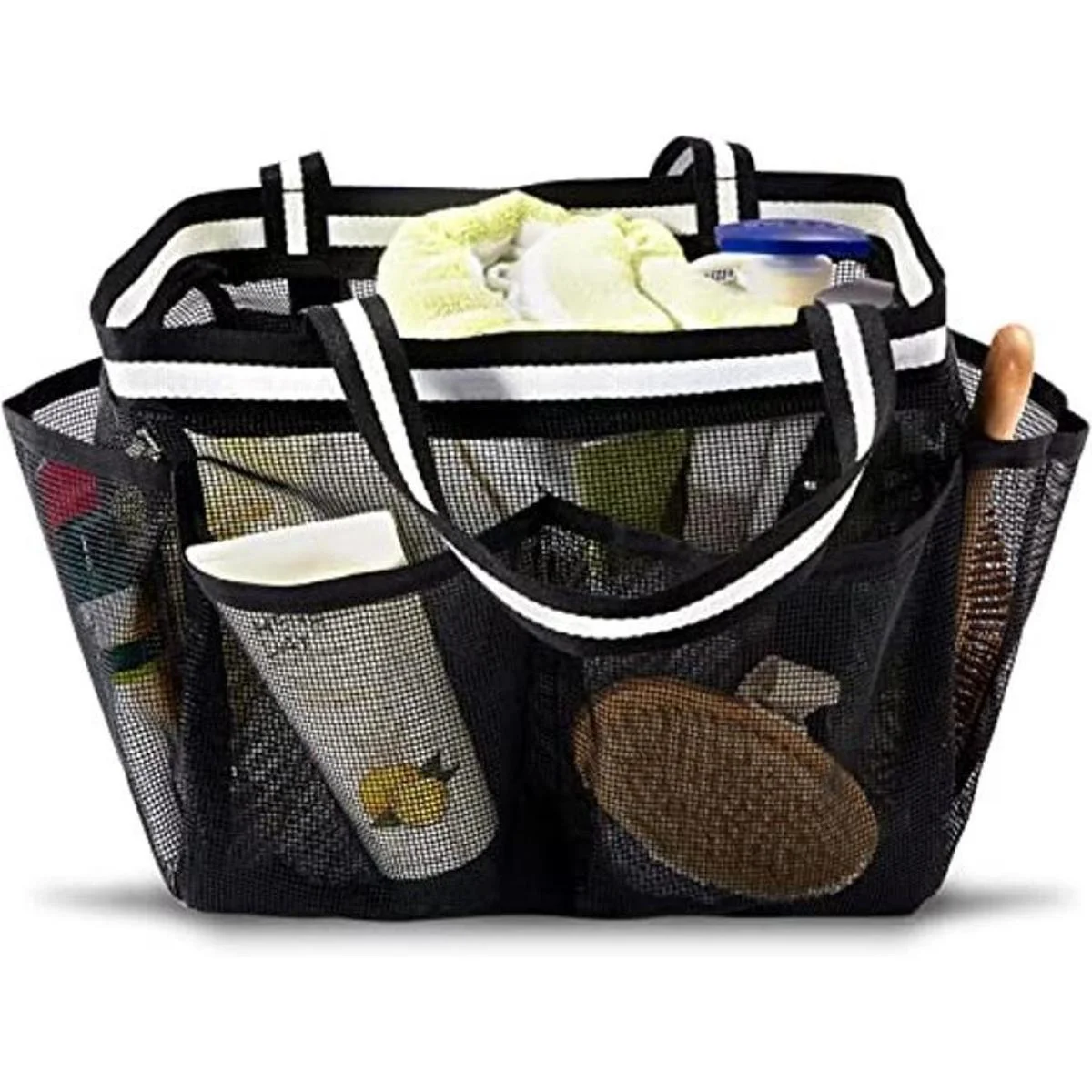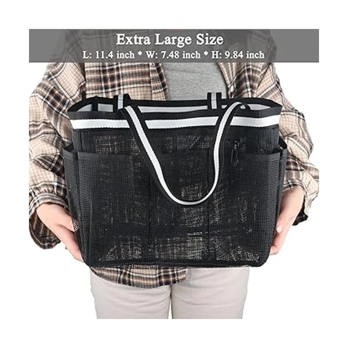 Ocim Bolsa de malla XL para ducha Cesta grande portátil para ducha para dormitorio, universidad, gimnasio, campamento, baño, color negro