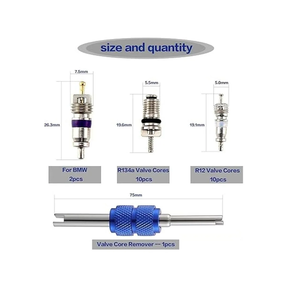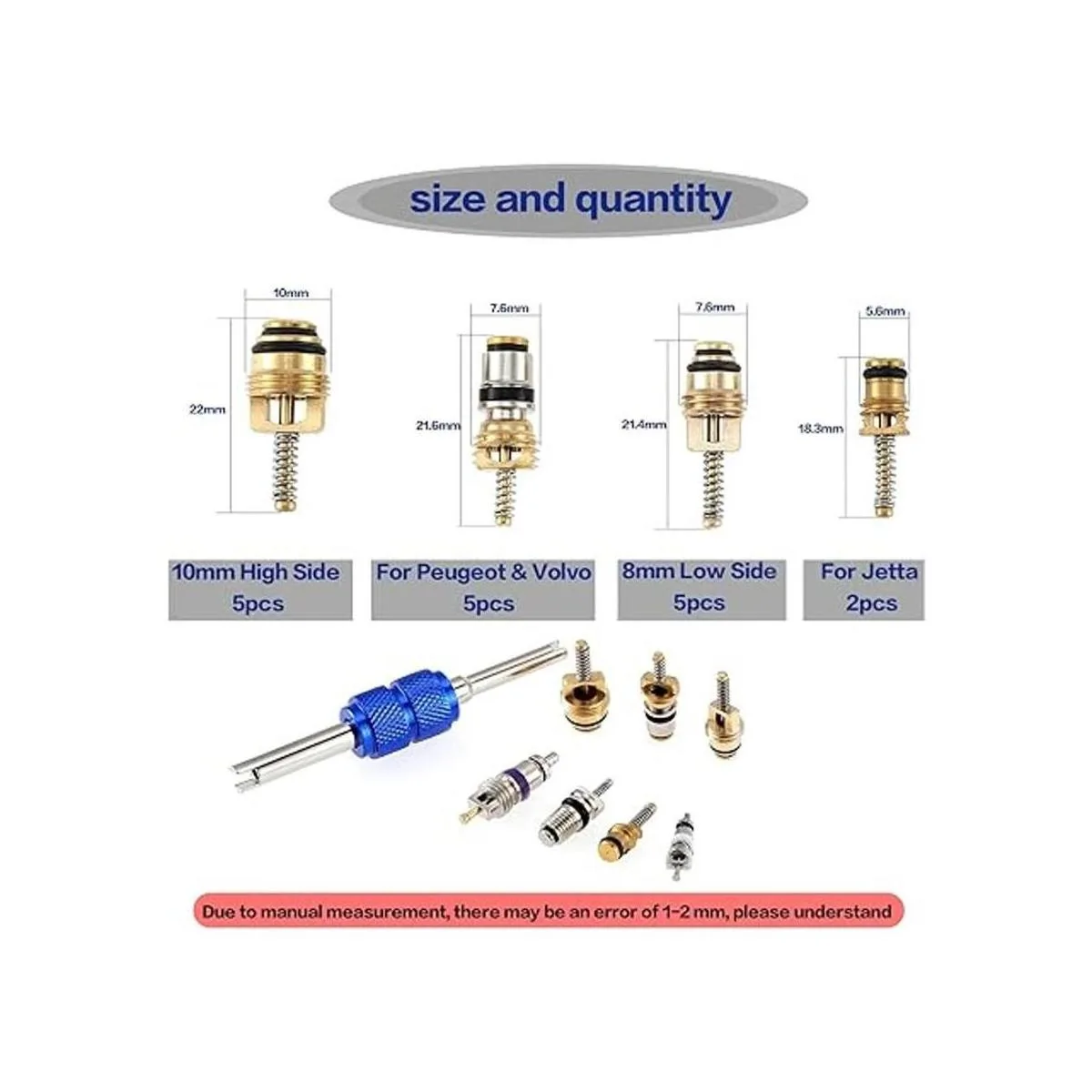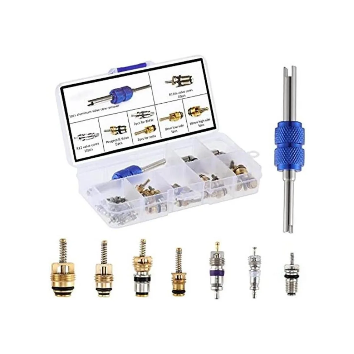 OCR Válvula de aire acondicionado de coche Core R12 R134a para aire acondicionado automotriz, vástago de válvula de neumático con doble cabeza doble desmontaje kit surtido de herramientas 40 piezas