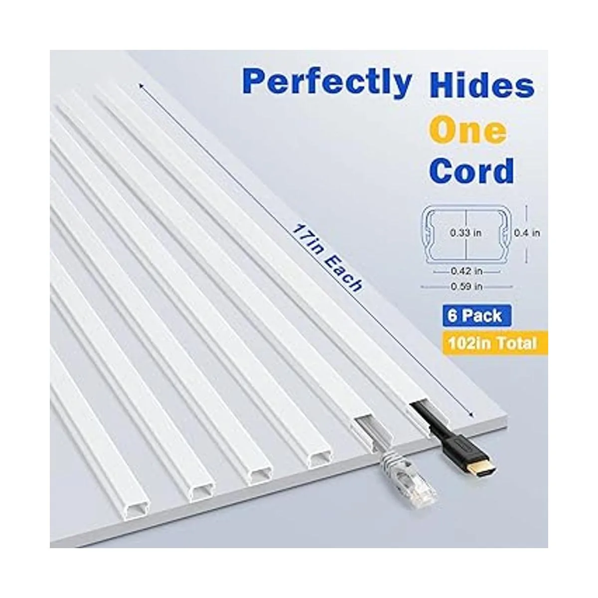 Ocultor de cables de 102 pulgadas, ocultor de cables para un cable, cubiertas de alambre para pintar para pared, ocultor de cables de PVC, conducto de cable individual para un cable de extensión grueso, corrector de cable de pared, 6 x 17 pulgadas de largo de ancho de 0.59 pulgadas de alto de 0.4 pulgadas, color blanco