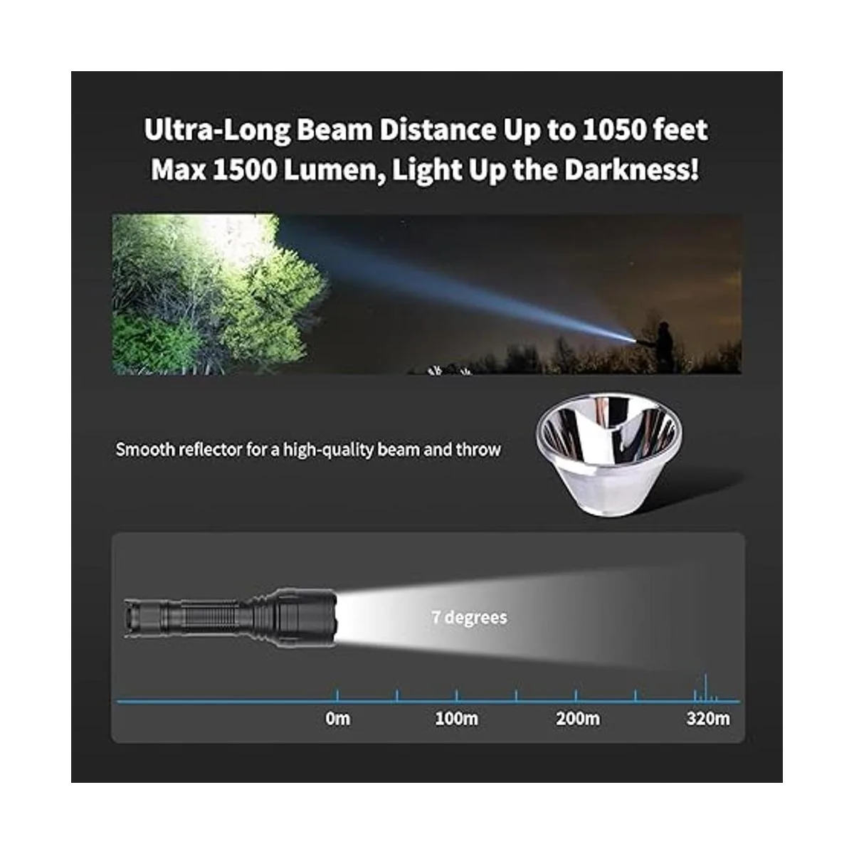 Ultra brillante y haz de larga distancia: la linterna NT23 utiliza una tecnología LED de alta calidad que ofrece una salida máxima de 1500 lúmenes, y produce una luz blanca fría súper brillante que es mucho más brillante que las linternas normales. También multiliza un reflector suave para producir un haz ultra apretado perfecto de 7 grados que hace que el rango eficaz de hasta 1000 pies, y cuenta con una duración de la batería de hasta 10 horas de tiempo de funcionamiento en el ajuste más bajo.