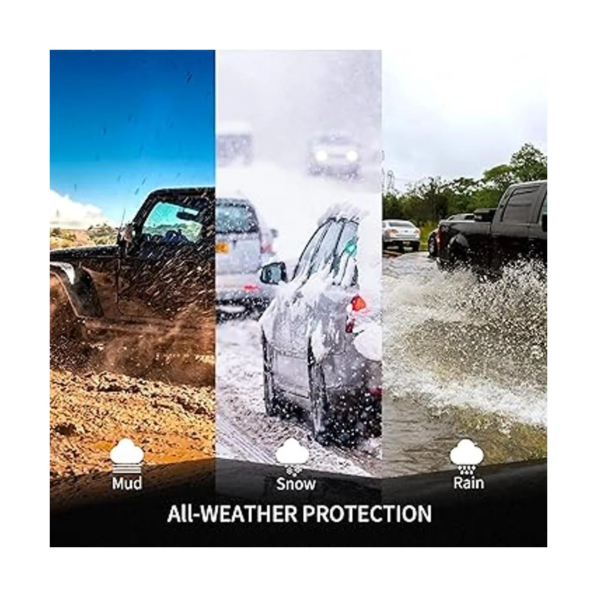 Duradero y protector para todo tipo de clima: fabricado con material de TPE de alta tensión no tóxico e inodoro que es seguro y duradero. Construido para soportar todas las condiciones climáticas lluvia, niebla, nieve, etc.. Resistente y flexible en climas fríos o cálidos. No se rompe, deforma, deteriora o endurece bajo temperaturas extremas
