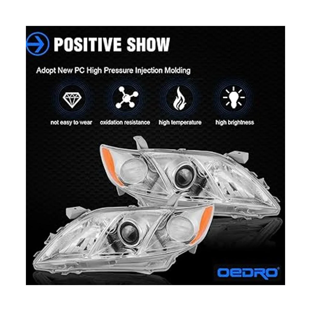 OEDRO Faros delanteros compatibles con Toyota Camry 20072009 con lente transparente de refector ámbar, carcasa cromada