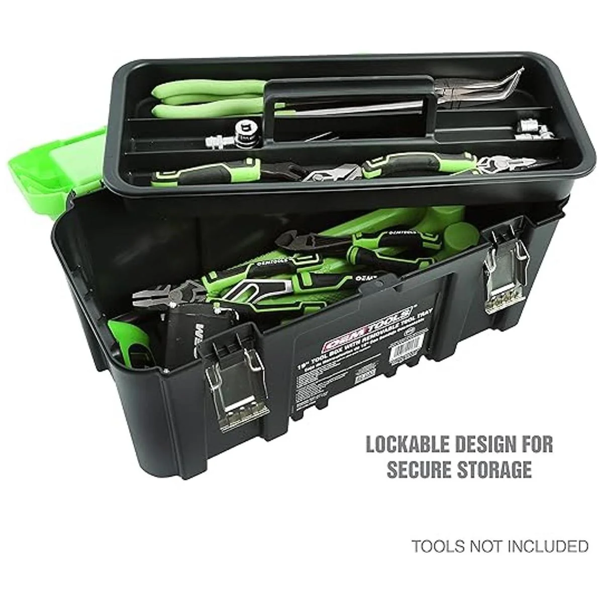 OEMTOOLS 22160 Caja de herramientas de 19 pulgadas con bandeja de herramientas extraíble, ranura de seguridad para candados, caja de herramientas de fácil acceso con tapa de múltiples compartimentos, peso máximo 40 libras.