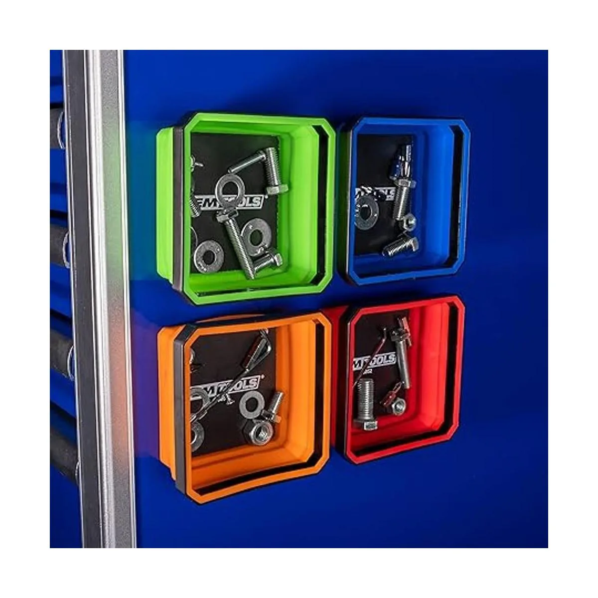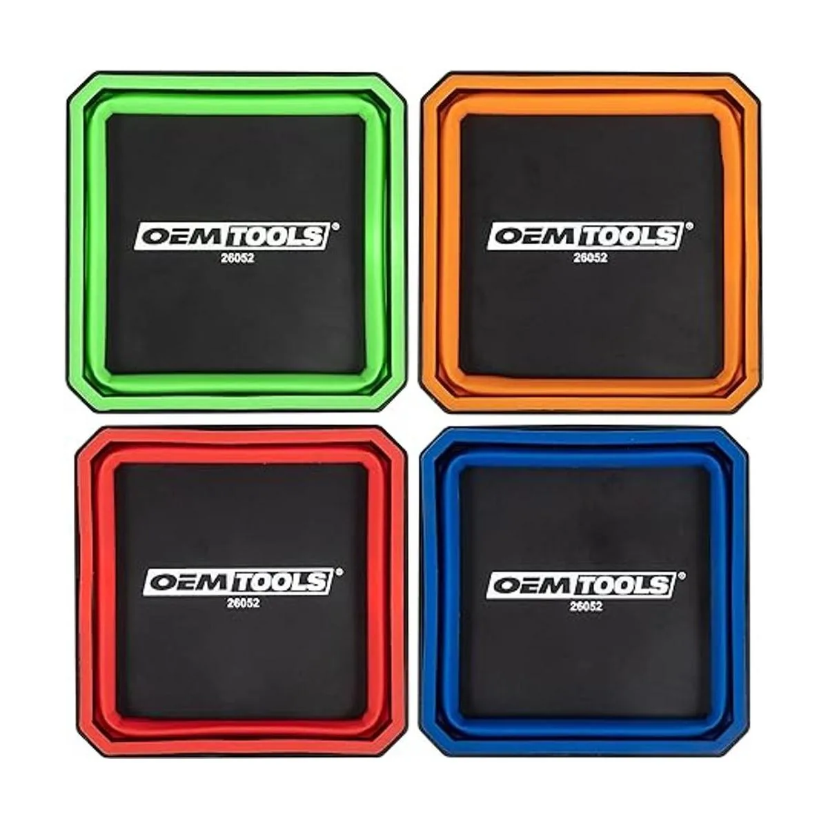 OEMTOOLS 26052 Bandeja plegable magnética, juego de 4 cuencos plegables para piezas pequeñas y herramientas, bandeja de silicona, juego de bandejas magnéticas rojas, azules, naranjas y verdes