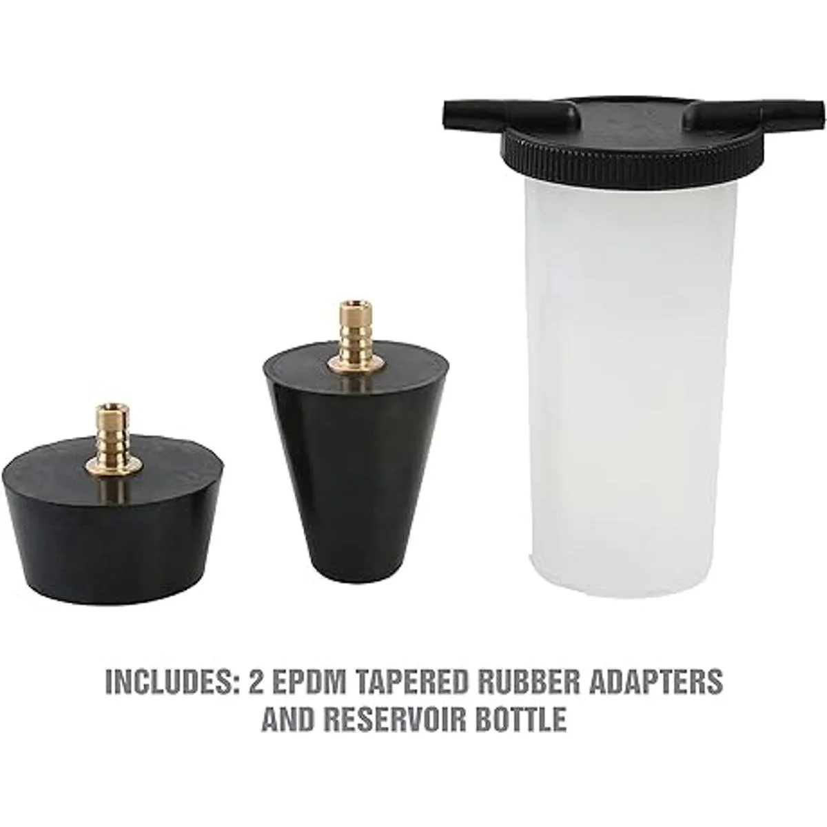 Componentes de ajuste apretado y duradero: este kit de adaptador de aspiradora de dirección asistida viene con 2 adaptadores de goma cónica EPDM y 3 adaptadores de purga de freno de goma; el depósito de plástico mantendrá el líquido de freno cáustico contenido mientras bombeas la aspiradora de mano