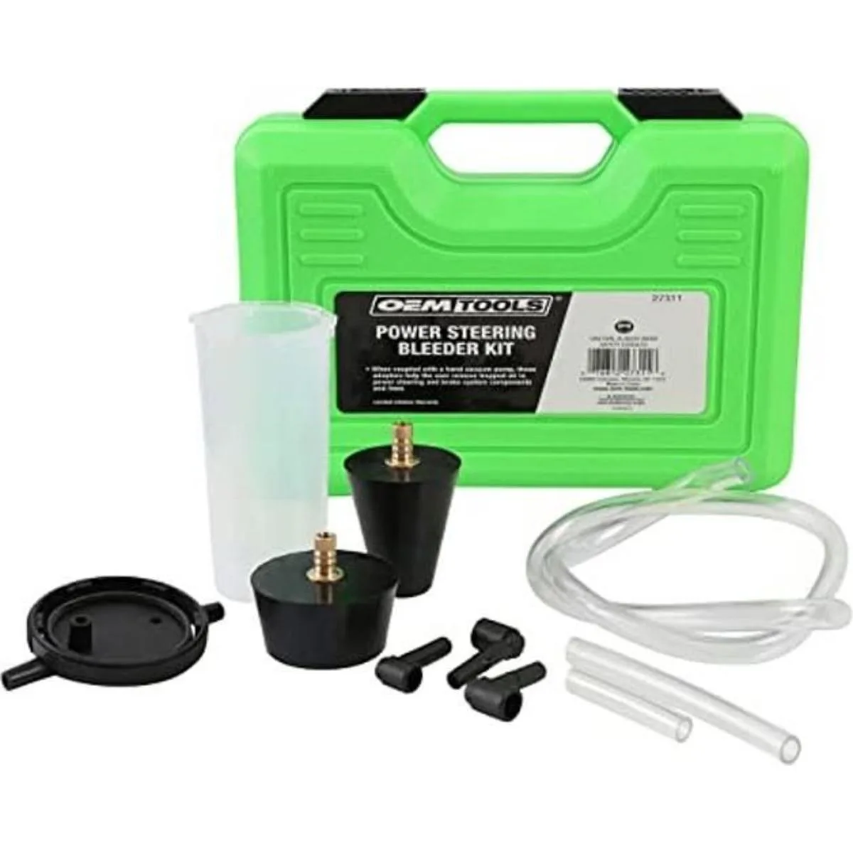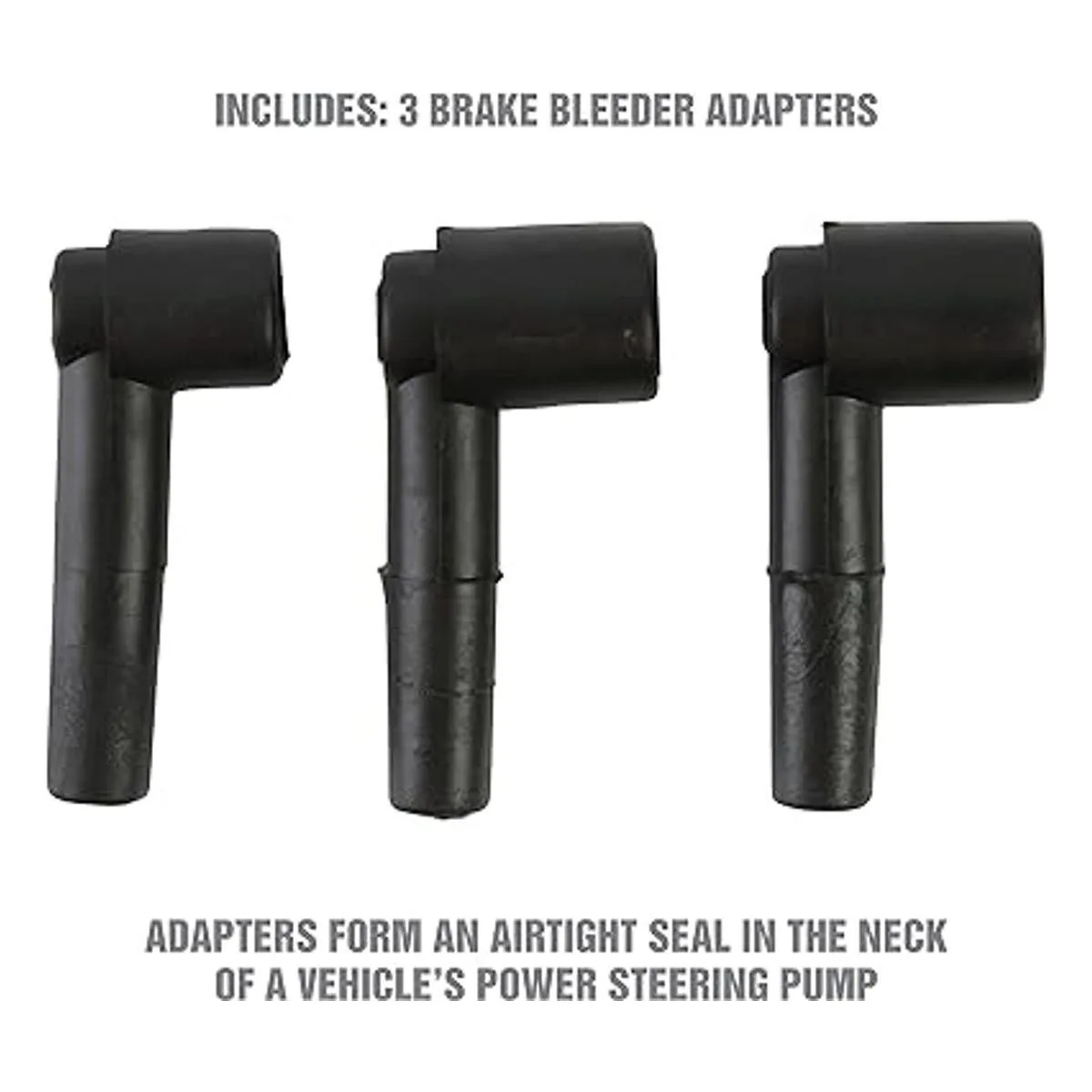 OEMTOOLS 27311 Kit de adaptador de dirección asistida y purga de freno, funciona con purga de vacío de mano, kit de purga de línea de freno con 2 adaptadores de dirección asistida de goma