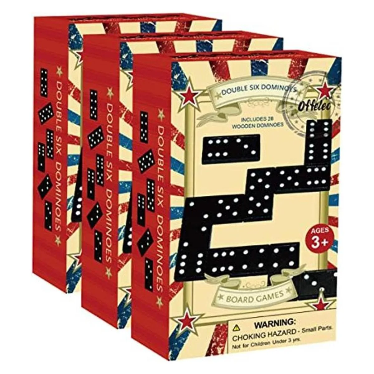 Offelec Paquete de 3 juegos de dominó para adultos, juego de dominó, juego de 28 azulejos, juego de mesa clásico para niños, juegos familiares, juegos de aula, noche ideal para 24 jugadores