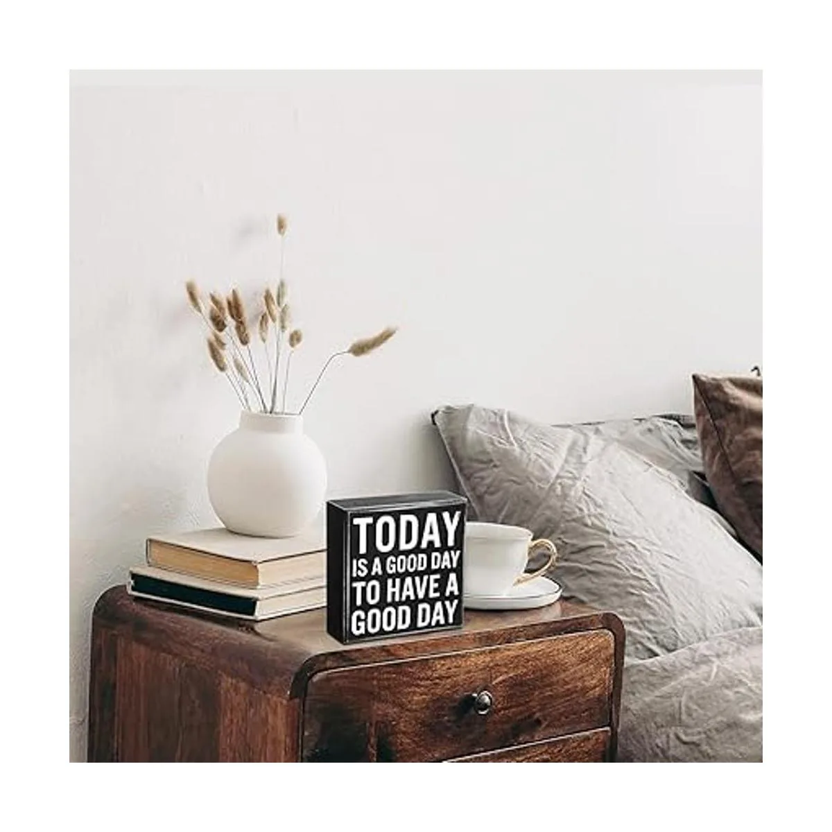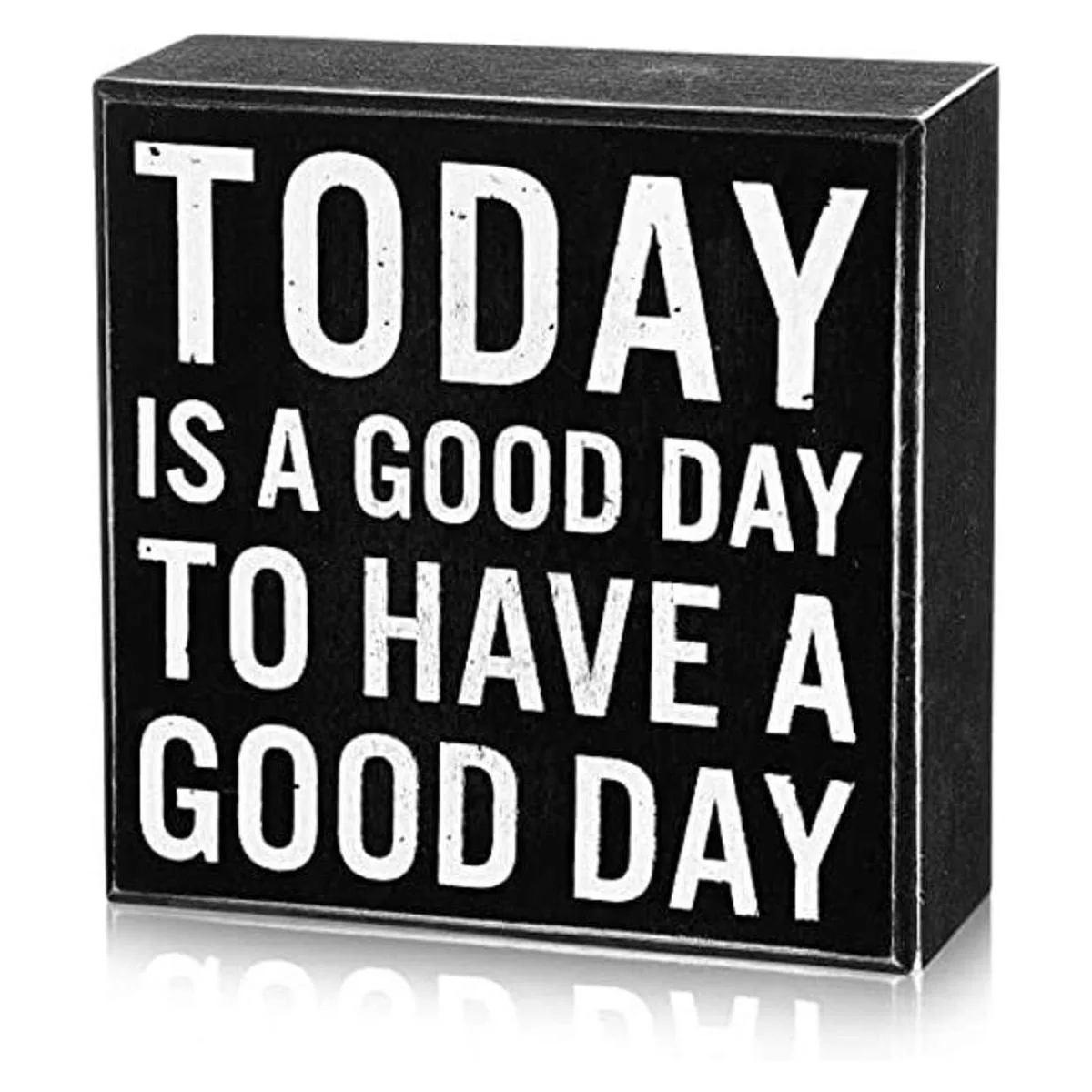 Letrero de caja inspirador: recibirás 1 letrero de decoración positivo que mide aproximadamente 5 x 5 pulgadas, 1.78 pulgadas de grosor, impreso con la palabra TODAY IS A GOOD DAY TO HAVE A GOOD DAY, positivo y significativo, que te traerá un buen día