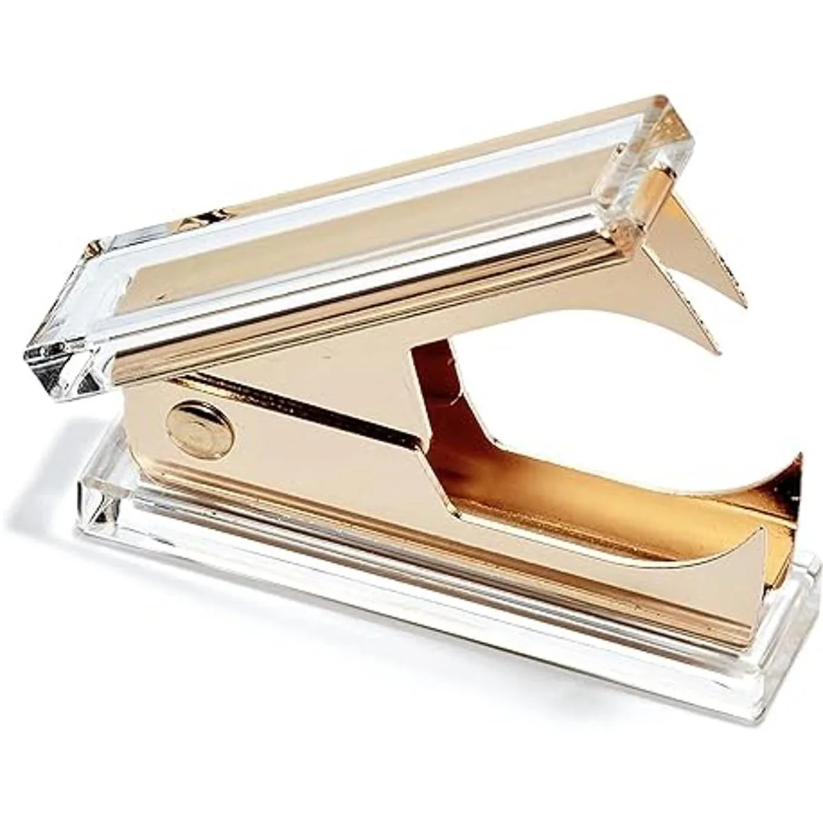 OfficeGoods Juego de escritorio acrílico de 3 piezas, incluye regla, removedor de grapas, tijeras, accesorios de escritorio funcionales y elegantes, herramientas estacionarias perfectas para el hogar, la oficina y la escuela, color dorado