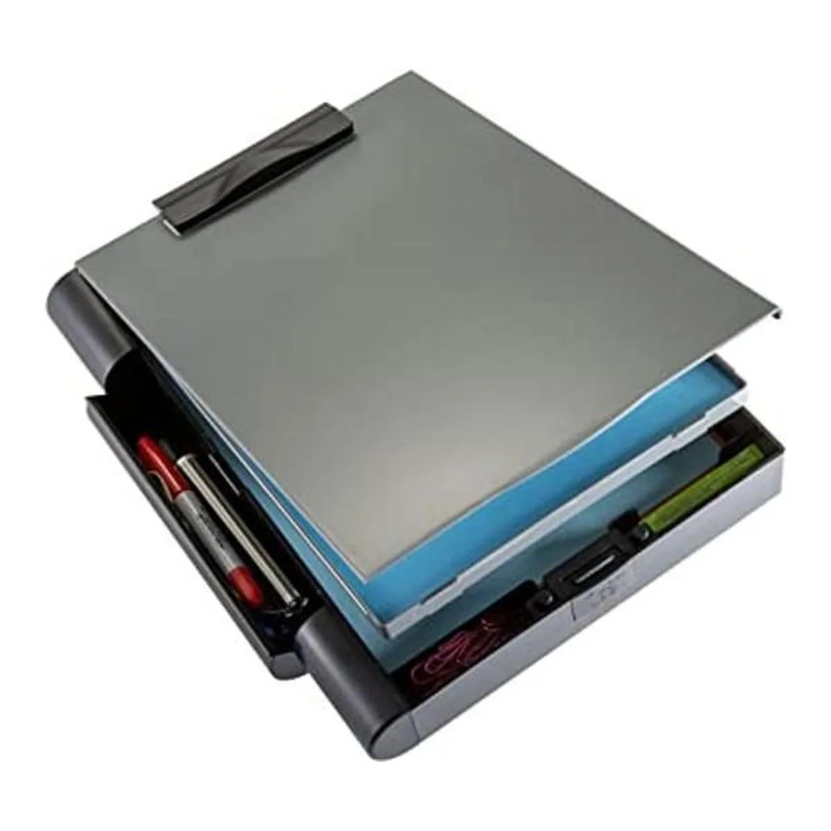 Officemate Tabla para formulario, reciclada, con clip de presión, ideal para formas, hecha en plástico, colores gris y negro