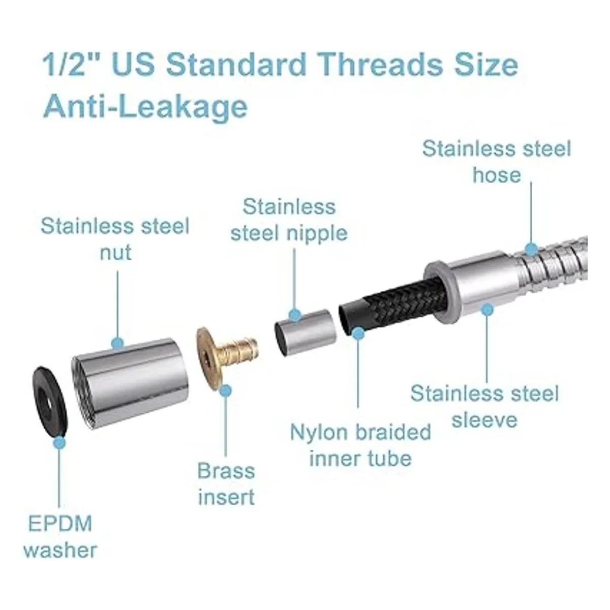 A prueba de explosiones: la manguera de ducha está hecha de 100 acero inoxidable y tubo interior EPDM, trenzada con trenzado de nailon de 8 cuerdas que ayuda a prevenir roturas y fugas de agua.
