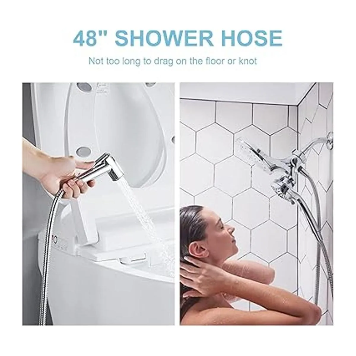 Práctica y versátil: manguera de bidé de 48 pulgadas con una longitud adecuada, no demasiado larga para tropezarte. Proporciona comodidad para la limpieza del inodoro, niños y mascotas bañadas o ducha sentada.