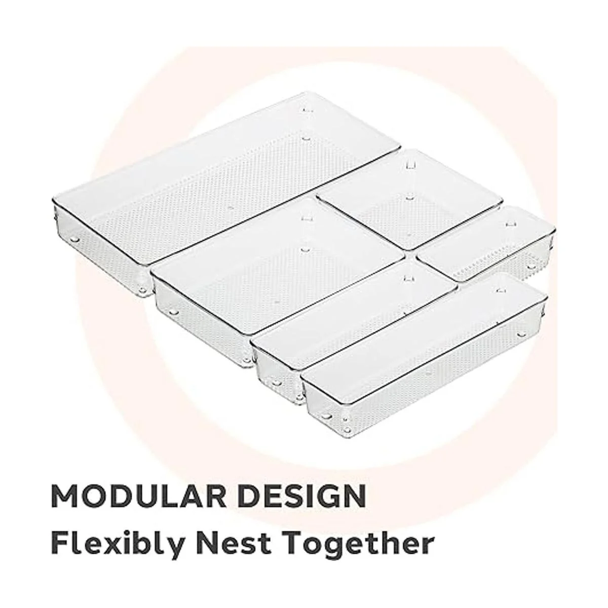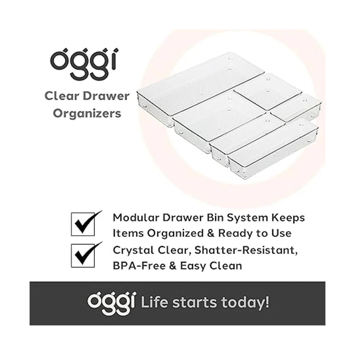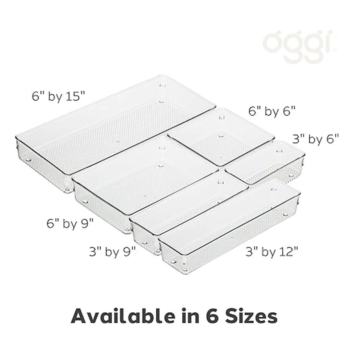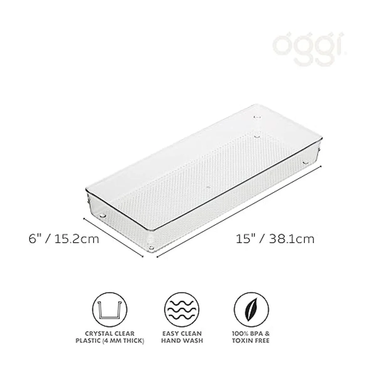 Oggi Organizador de cajones transparente, 6 x 15 pulgadas, ideal para organizar cajones de cocina, oficina, escritorio, cubiertos, utensilios de cocina, cosméticos y baños