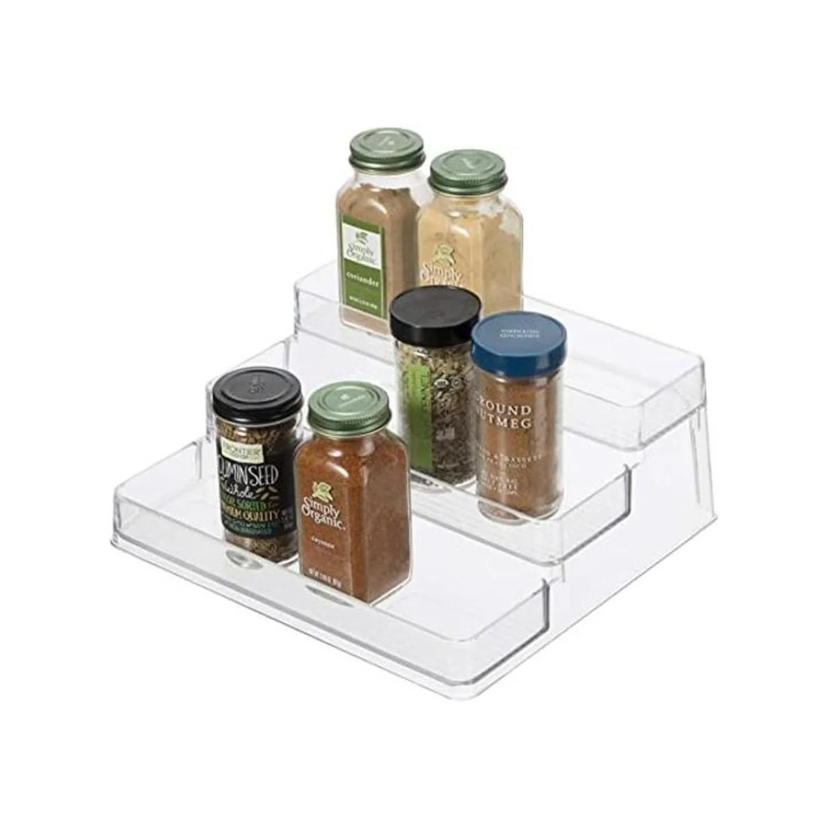 OGGI Organizador de especias de 3 niveles y almacenamiento de despensa para estante, gabinete de cocina, estante de especias, organización y almacenamiento de despensa, estantes transparentes