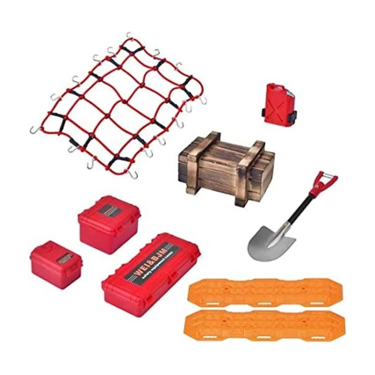 OGRC Caja de almacenamiento 8 en 1, caja de madera, red de equipaje, pala para RC 110 Crawler Traxxas TRX4 Redcat GEN 7 8 RC4WD D90 AXIAL SCX10 Accesorios