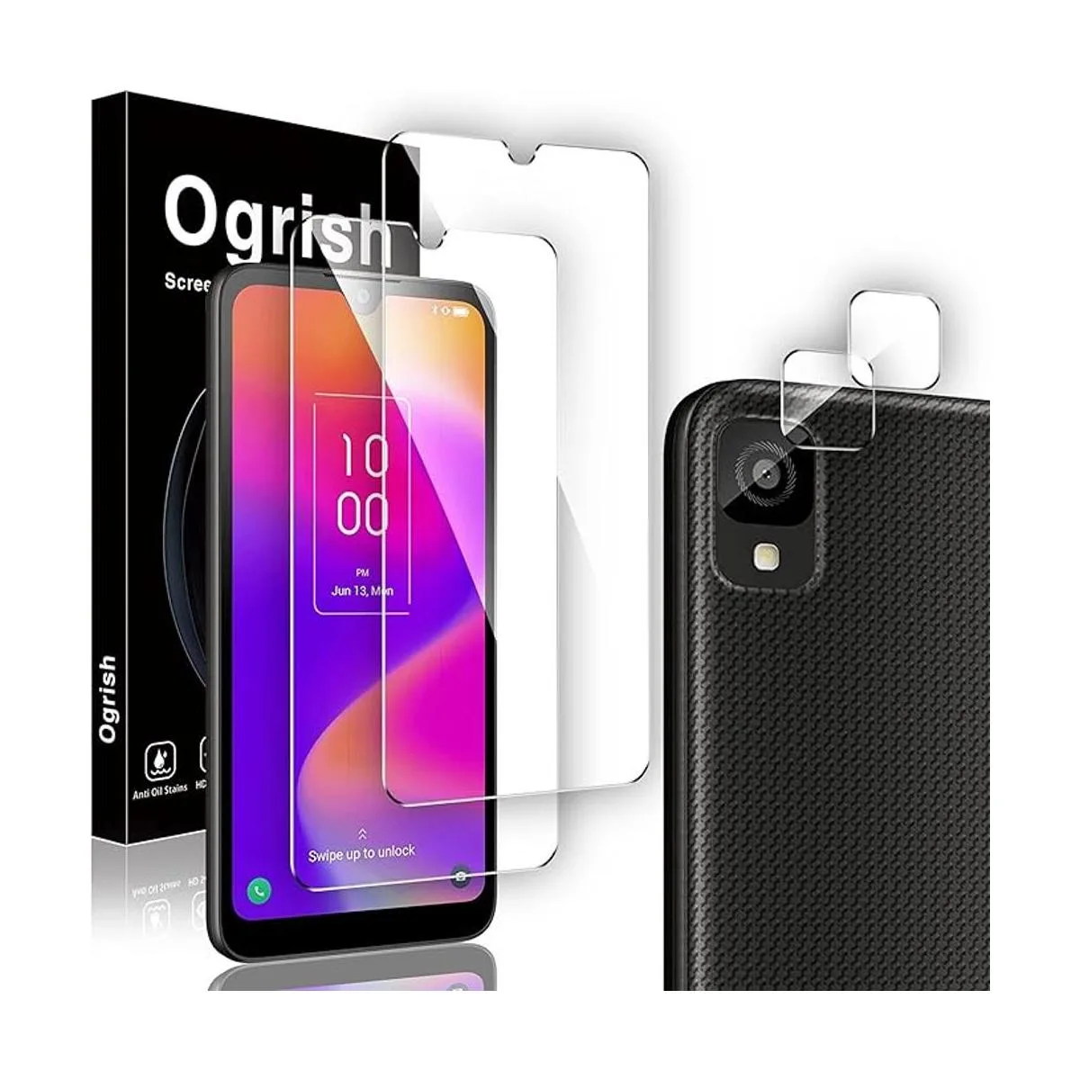 Ogrish Paquete de 22 Protector de pantalla para TCL 30Z TCL 30 Z, y protector de lente de cámara vidrio templado, antihuellas, a prueba de roturas, claridad HD