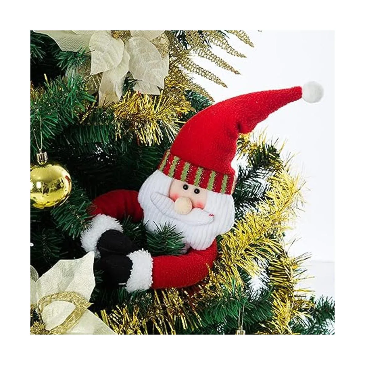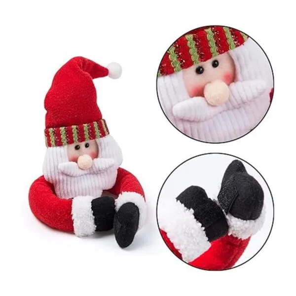 Ogrmar Paquete de 2 cortinas de Navidad con hebilla de muñeca de Papá Noel y muñeco de nieve creativo, cierre de sujeción para botella de vino de Navidad para decoración de ventana del hogar rojo y blanco
