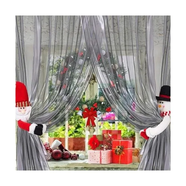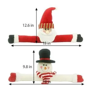 El paquete incluye: recibirás un alzapaños de cortina de Papá Noel y un muñeco de nieve. El tamaño del muñeco de nieve es de 9.8 x 18 pulgadas expandido y el tamaño de Papá Noel es de 12.6 x 18 pulgadas expandido