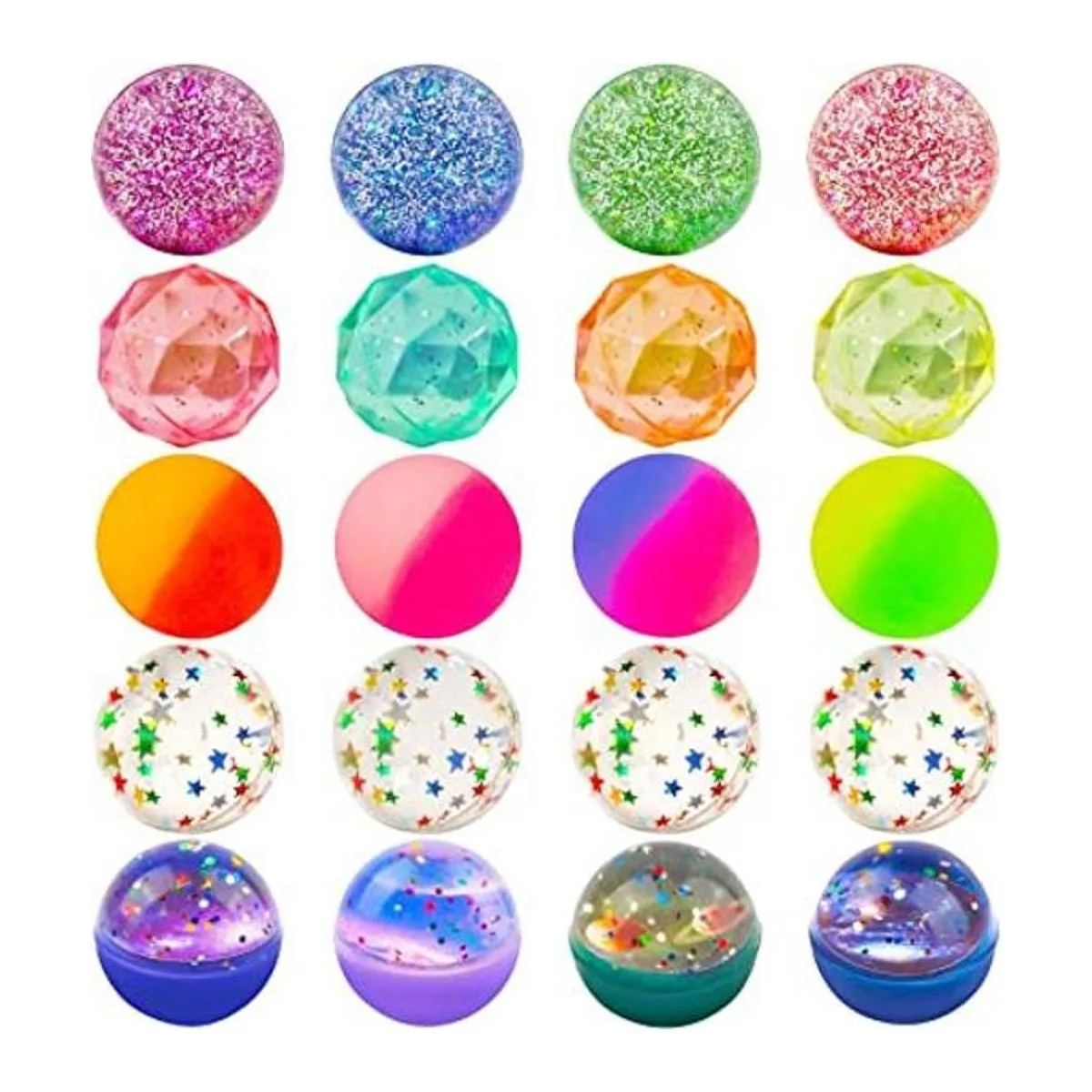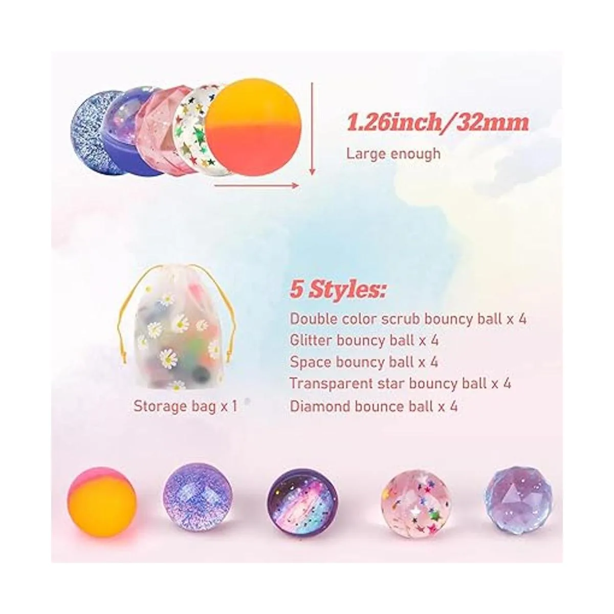 Ohanniewa Bolas saltantes para niños, 20 piezas, 5 estilos de 1.260 in, bolas saltantes surtidas con bolsa de almacenamiento para recuerdos de fiesta de cumpleaños