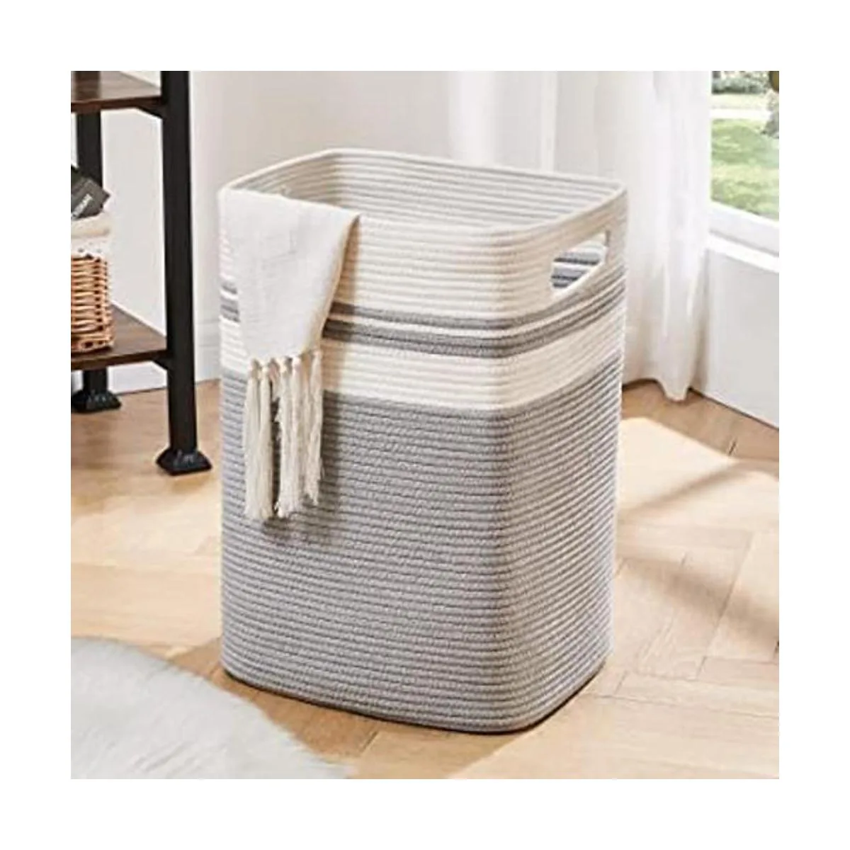 OIAHOMY Cesta de lavandería, cesta de almacenamiento de algodón alta con asas, cesta decorativa para sala de estar, cesta grande plegable para juguetes, almohadas, organizador de ropa, 16 x 13 x 22 pulgadas, gris