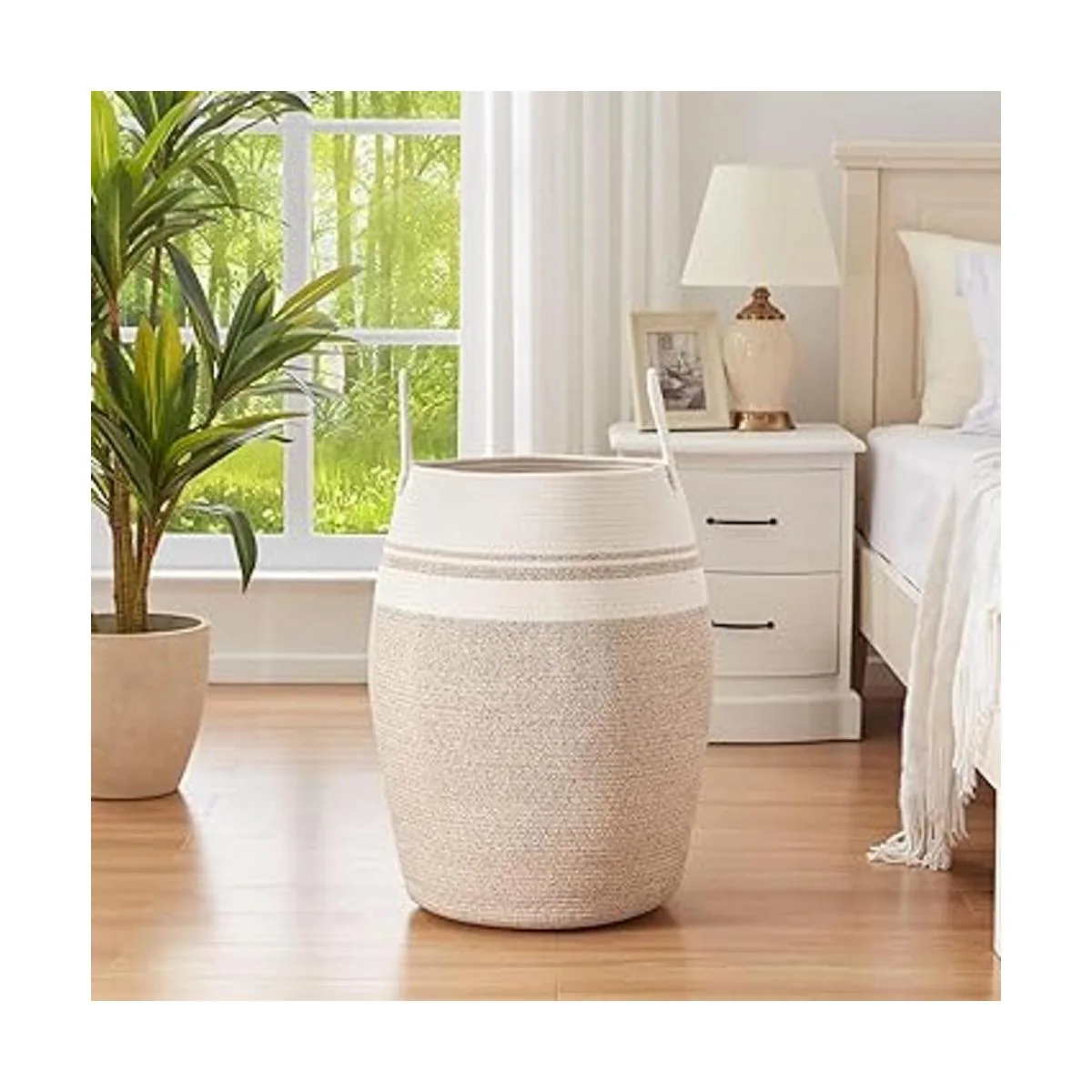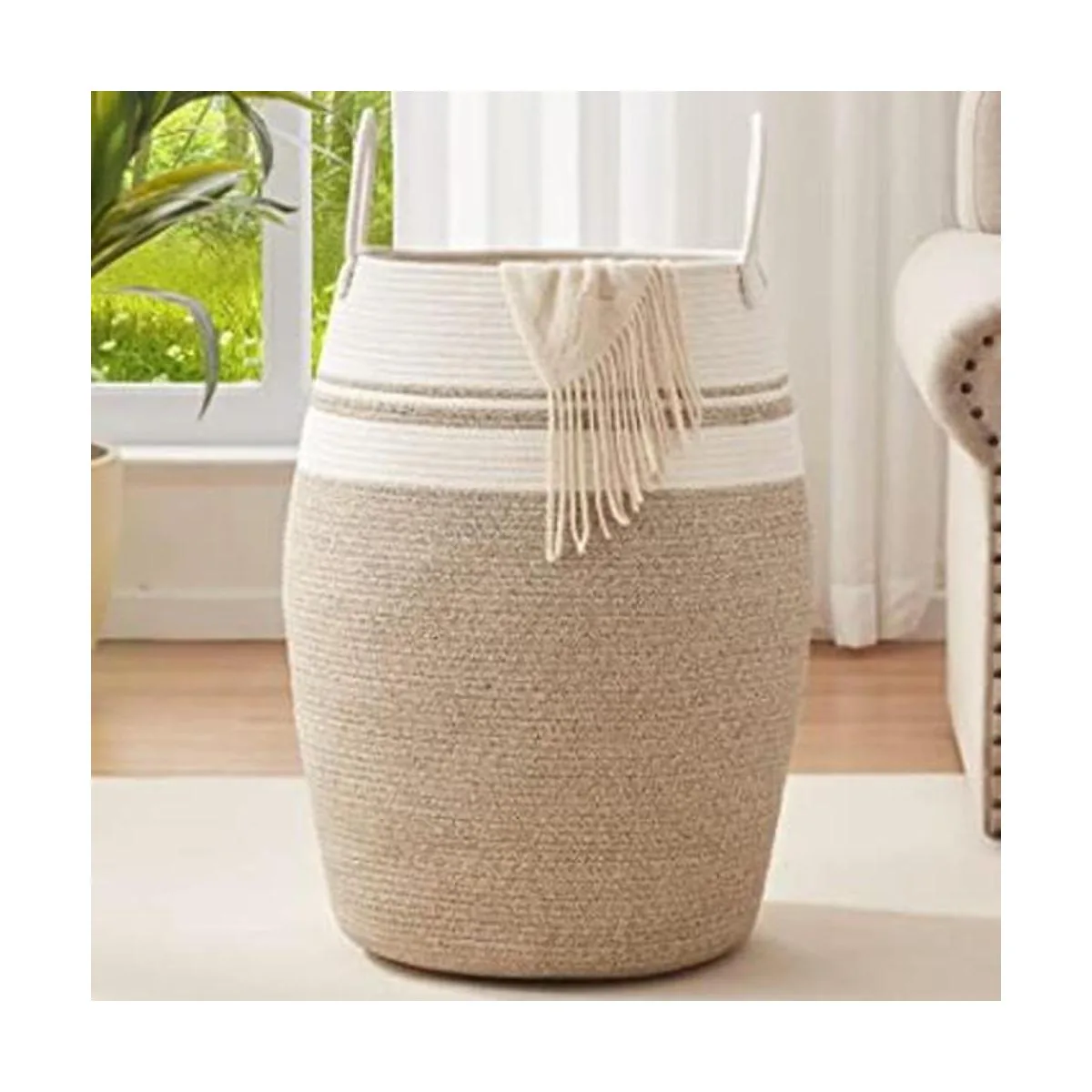 La mejor cesta de lavandería de lujo: nuestra cesta de ropa sucia de cuerda tiene un aspecto puro y hermoso. Van bien en cualquier habitación de tu hogar. La elegante cesta de lavandería funciona como decoración del hogar y contenedor de almacenamiento para tu dormitorio, baño, cestas de lavandería y almacenamiento de juguetes.