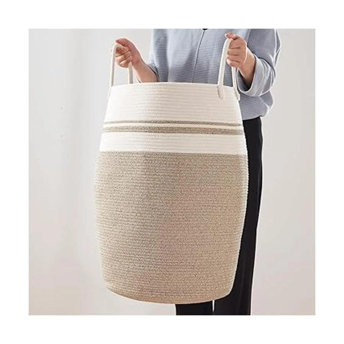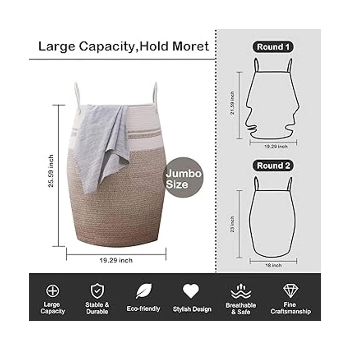 Duradero Con el fin de proporcionarte una cesta de lavandería de alta calidad que se puede utilizar durante muchos años, utilizamos cuerda de la más alta calidad como materia prima, lo que hace que la cesta sea mejor resistencia al desgaste y durabilidad. Sentirás una profunda diferencia en el momento en que la recibas.