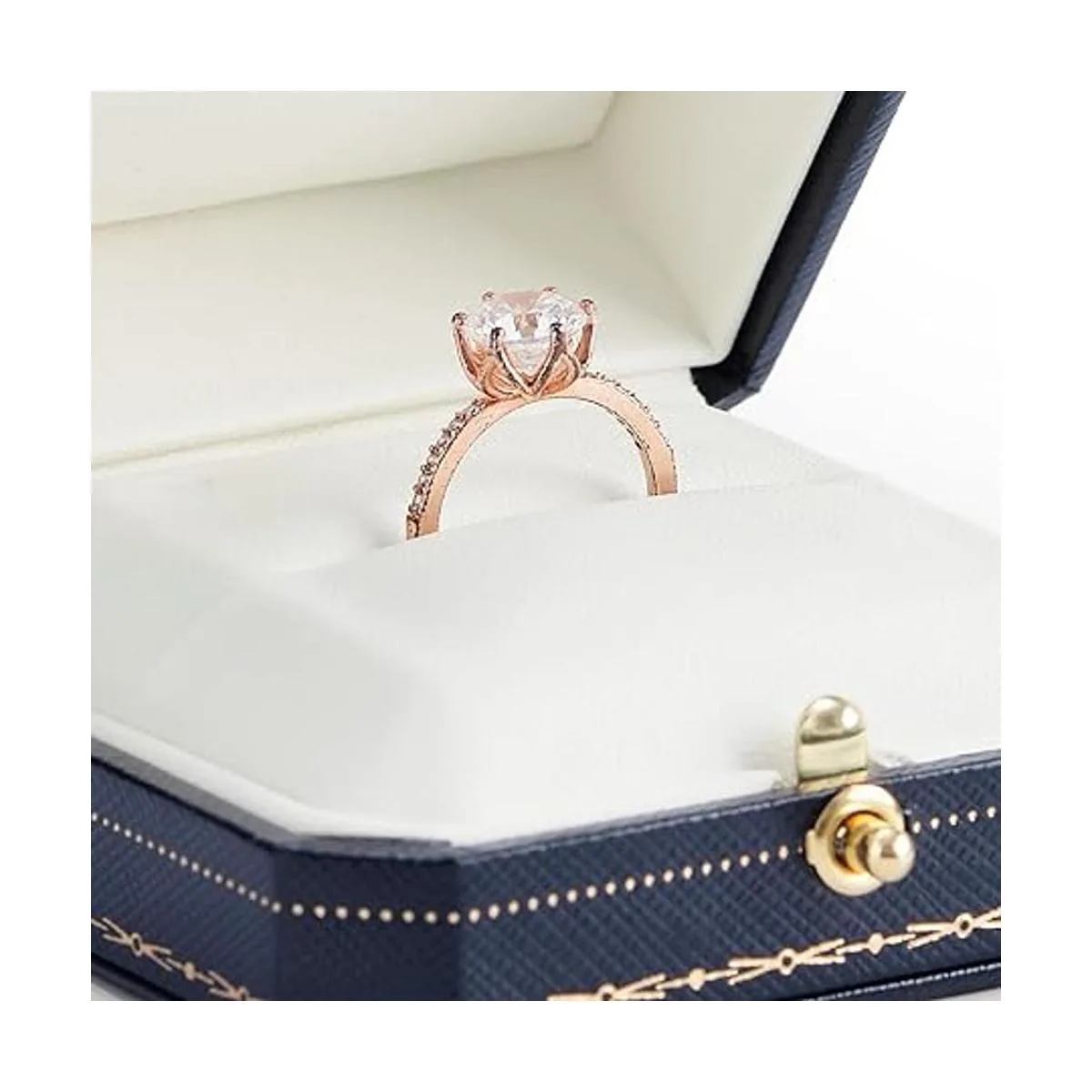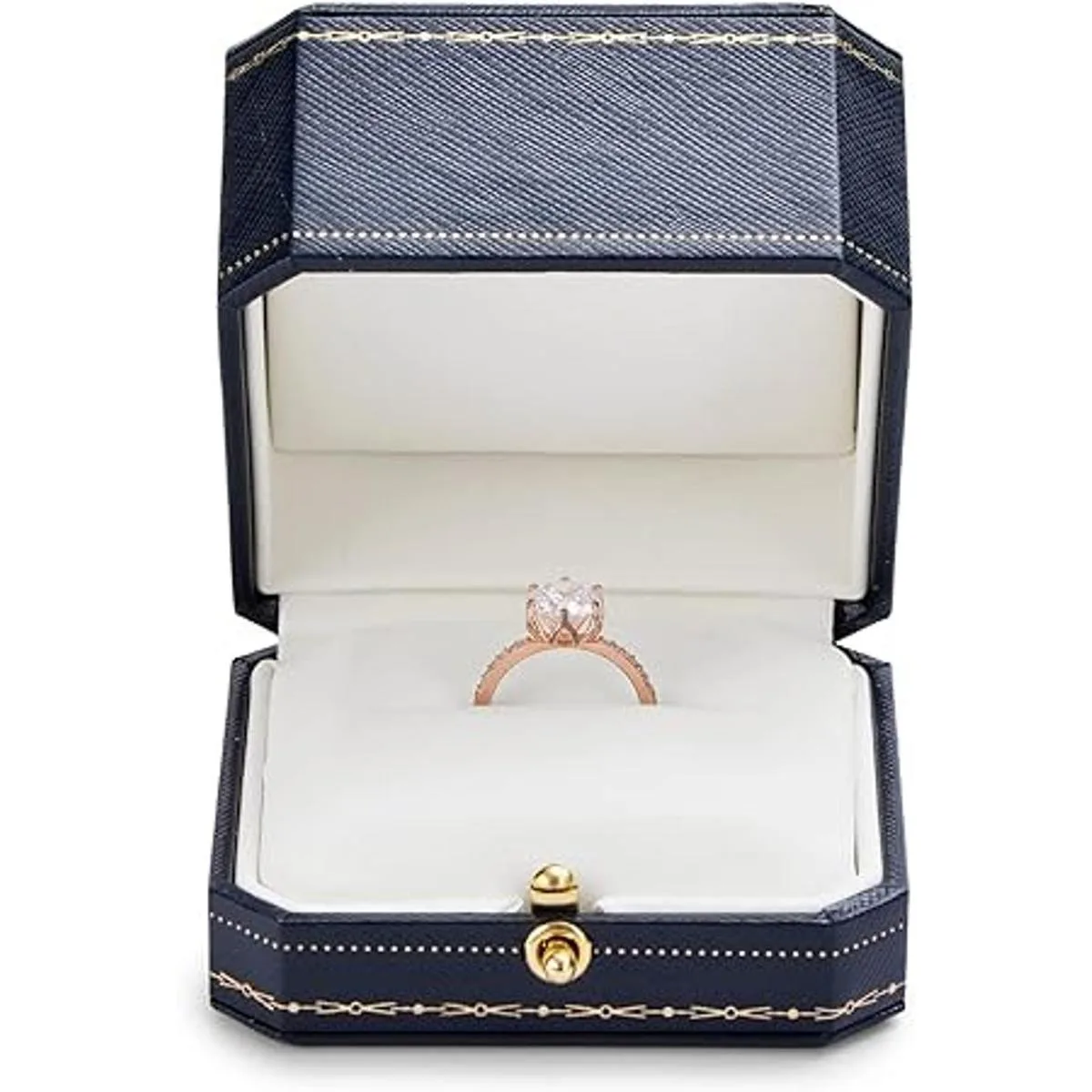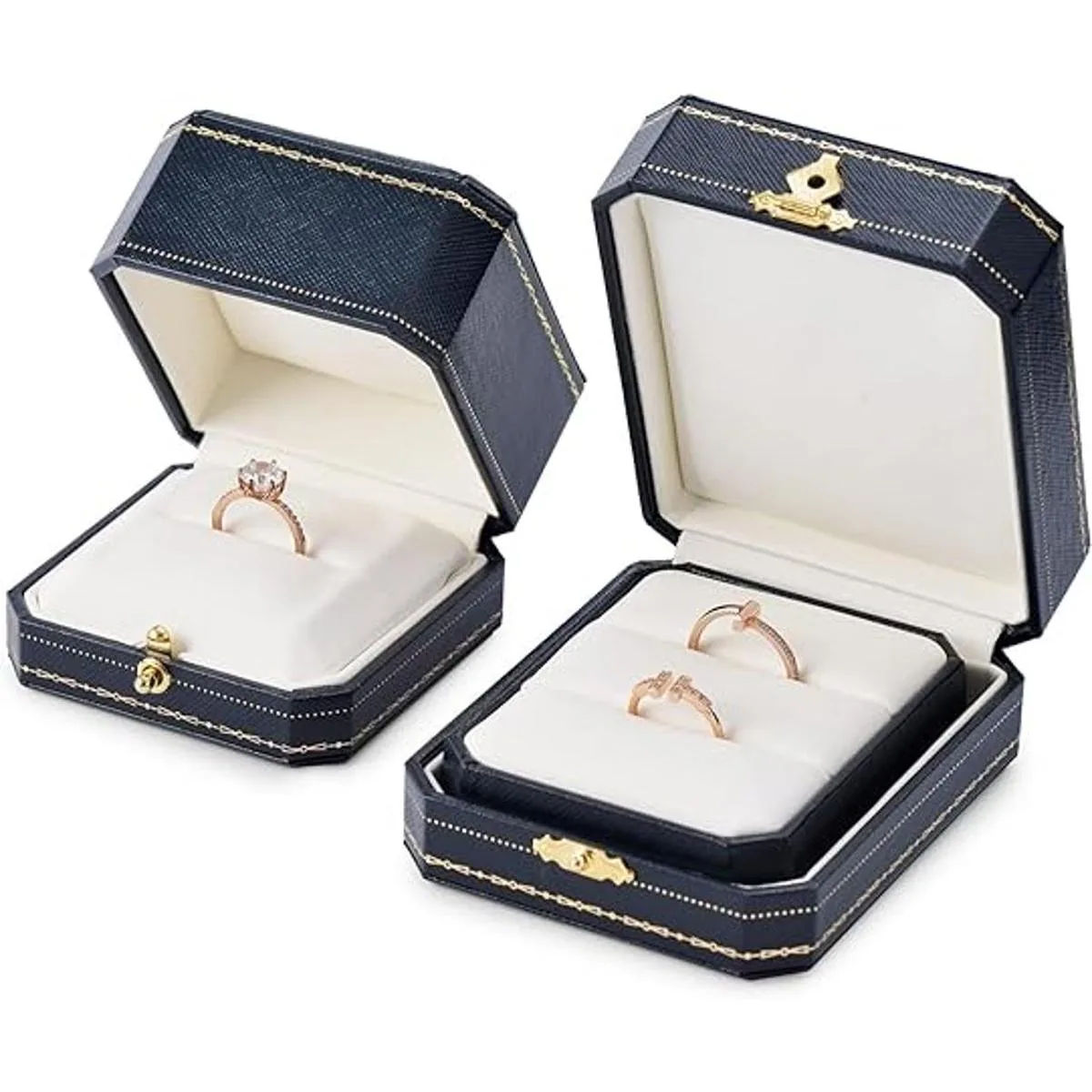 Oirlv Caja de anillo de compromiso Noble Caja de regalo de joyería, Caja de portador de anillos octogonal